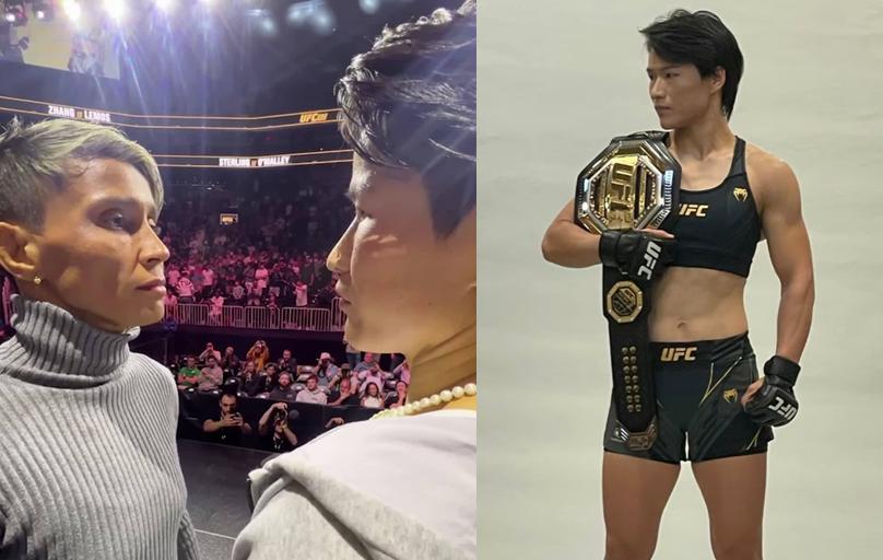 只見,張偉麗肩扛金腰帶,霸氣外露,怒瞪萊莫斯上演眼神殺,兩人站在一起的時候,明顯可以感受到張偉麗個頭更高一點,所以可以俯視對手,體格也更強壯,在力量方面,這場對決張偉麗應該會佔據一定的優勢。