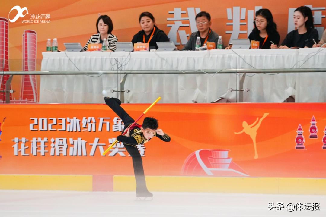 伴隨着激情的《西遊記》主題曲,來自上海全明星滑冰場南翔印象城店隊伍的侯萭灝身着黑色考斯滕,拿着“金箍棒”,穿梭在冰上瀰漫的一層白霧中,恰似騰雲駕霧的孫悟空,一經出場就吸引了全場的目光,他以精彩的表現贏得了大衆男子單人滑項目幼兒高齡組比賽的第一名。家長侯晉介紹,孩子今年9歲,練習花樣滑冰已有兩年多,感覺他比以前變得更有毅力,對自己要求也更高了。