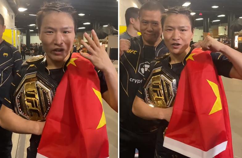 隨後張偉麗也更新了個人狀態,曬出了獲勝之後的自拍視頻,只見,張偉麗右肩披着五星紅旗,左鍵佩掛金腰帶,對着鏡頭喊道:“腰帶又帶回了中國,感謝所有人對我的支持。”畫面令人振奮,血脈噴張,張偉麗真的是好樣的,太不容易了。