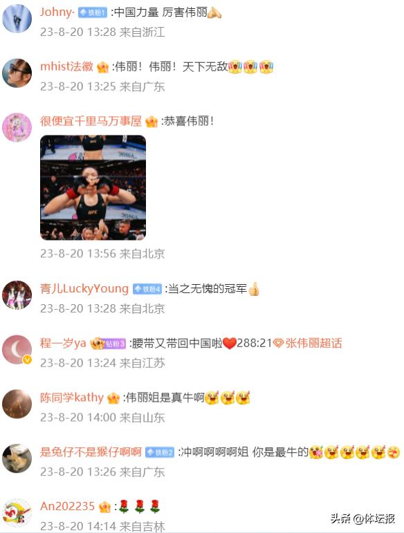 賽後,張偉麗也通過微博向大家表示了感謝:“腰帶又帶回了中國,感謝所有人對我的支持!”