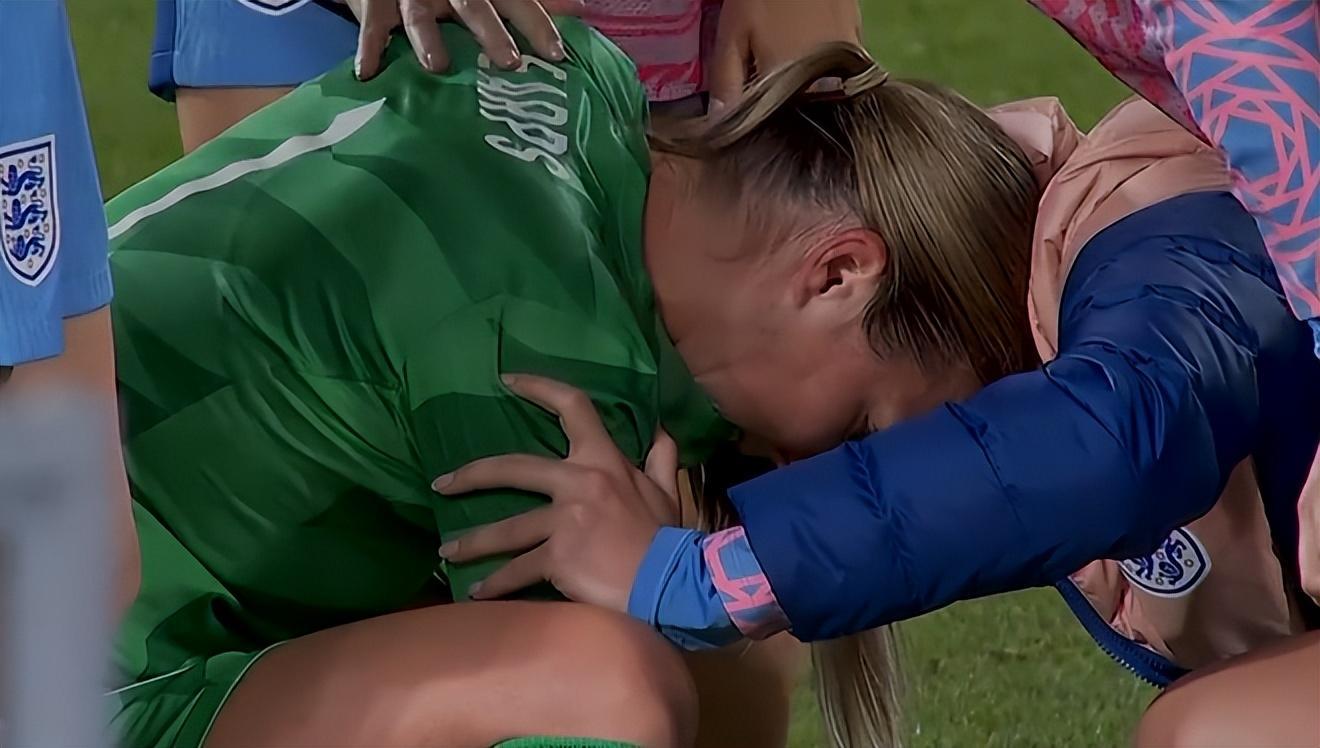 隨着來自美國的主裁判一聲哨響,西班牙女足拿到隊史首個世界盃冠軍,隊員們瘋狂慶祝,抱在一起哭泣,而失利的歐洲冠軍英格蘭黯然神傷,同樣有不少人流下了眼淚,特別是撲出點球的門將厄普斯“猛女落淚”,哭到不能自己!