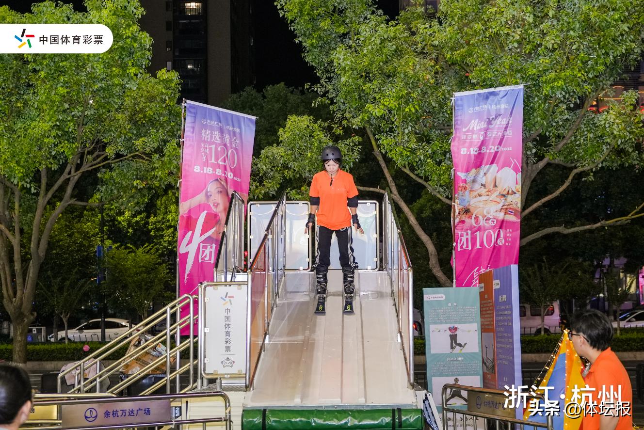 8月19日-20日,爲期兩天的杭州體彩社區運動會暨全民健身冰雪運動體驗展在杭州市餘杭區萬達廣場火熱進行。20日傍晚,浙江省體育彩票管理中心副主任應瑾,杭州市體育彩票管理中心主任王天蓉,以及相關領導、嘉賓蒞臨現場參加啓動儀式。活動現場,市民朋友們體驗了夏日裏的冰雪運動,旱地冰壺、滑雪模擬機,以及初次亮相的跳臺滑雪車展示,將刺激的冬季運動項目切實帶到普通民衆的身邊來,爲現場參與活動的人羣提供了全新打卡體驗。
