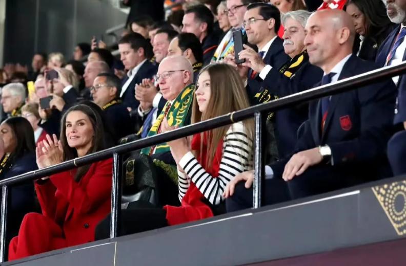 世界盃女足決賽,西班牙女足1-0擊敗英格蘭,捧得隊史上第一座世界盃冠軍,此役,西班牙王后萊蒂齊亞帶着小公主索菲亞也來到了現場,母女倆提前奔赴悉尼,似乎對同胞的奪冠充滿了信心,而最終她們也見證了西班牙女足碰杯時刻,現年只有16歲的小公主索菲亞驚豔亮相,讓人印象深刻。
