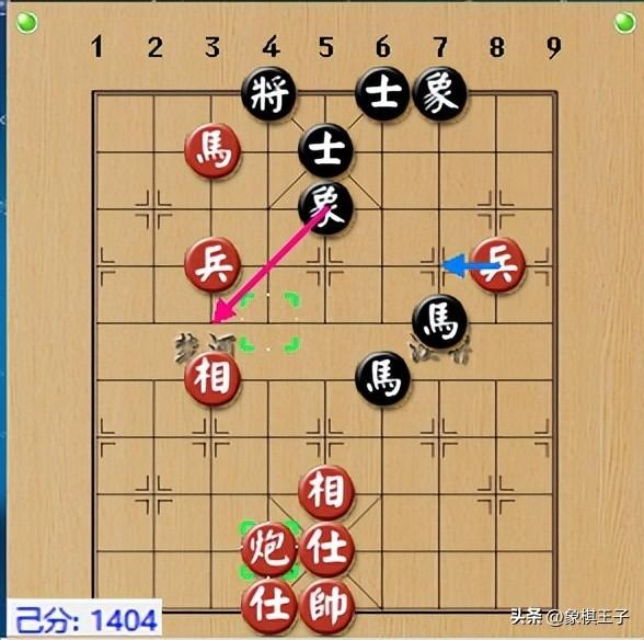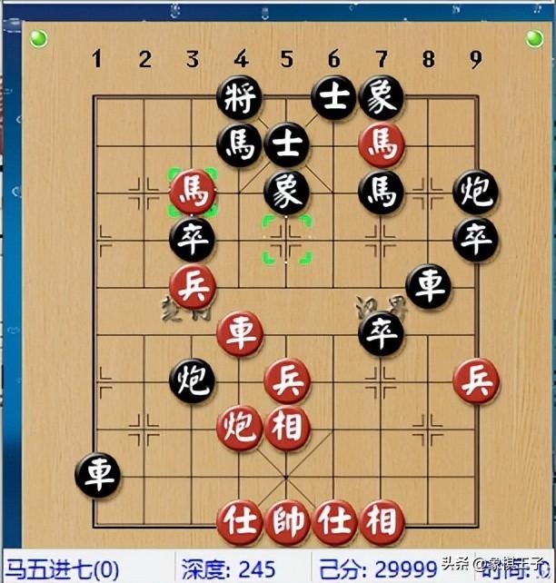 紅方謀略在胸,王天一再掃黑方一卒,成馬炮雙兵仕相全對雙馬士象全的必勝之面。