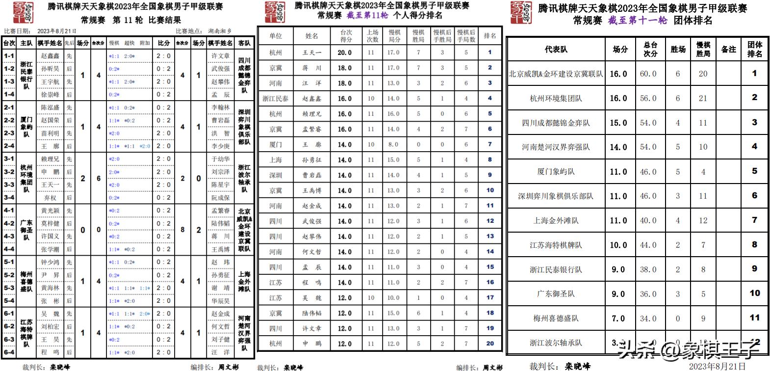 上半11輪中,棋界豪門北京威凱&金環建設京冀聯隊發揮強勁,全隊沒有任何短板,16分斬得半程冠軍,相當強勢,小分60個,令人驚歎。
