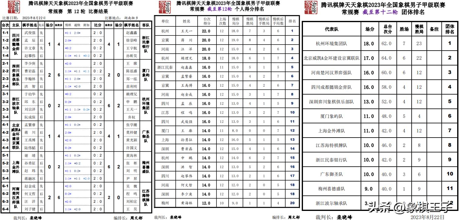 是輪四川再鬥浙江,兩隊上一回合打和,這輪再次成平,川軍孟辰、武俊強勝浙軍徐崇峯、趙鑫鑫,浙隊王宇航、孫昕昊贏川隊許文章、趙攀偉,連平兩場。