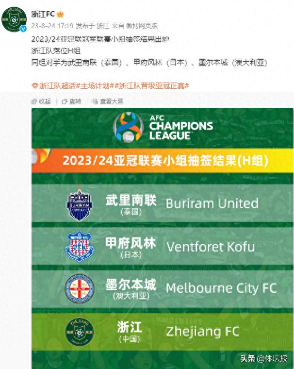 亞冠標題,抽籤結果出爐!浙江隊帶着夢想奔向亞冠