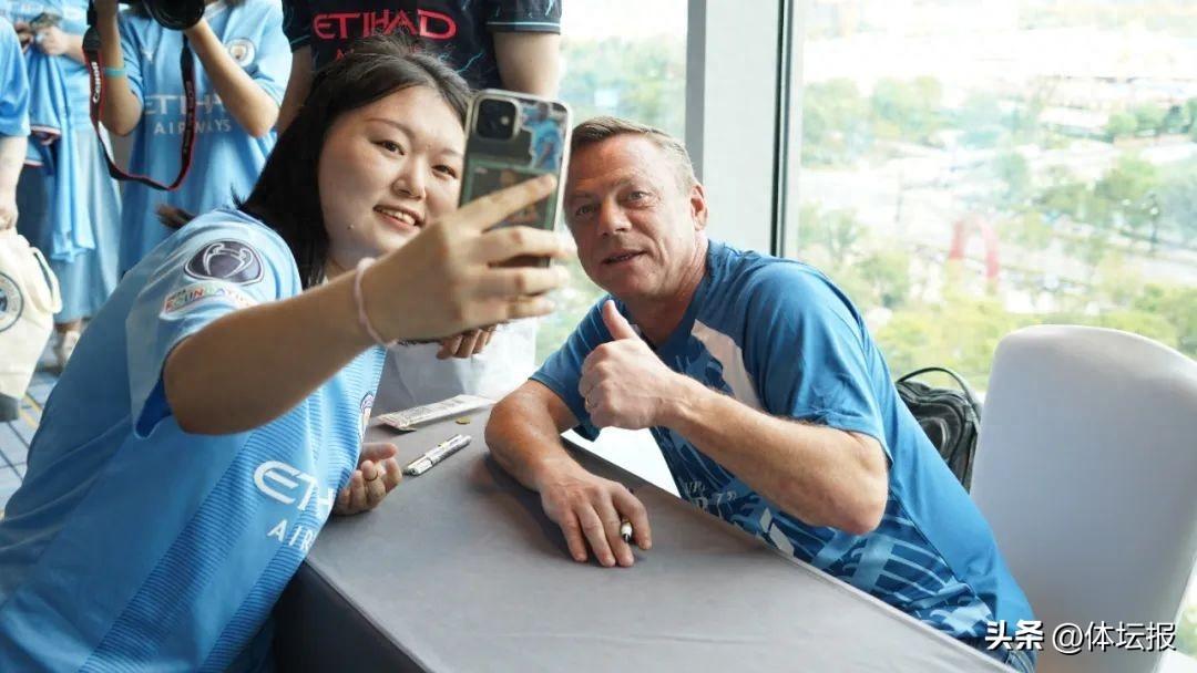 除了冠軍獎盃與球迷面對面,曼城名宿保羅·迪科夫也來到現場與球迷互動,球迷紛紛與之合影、簽名。