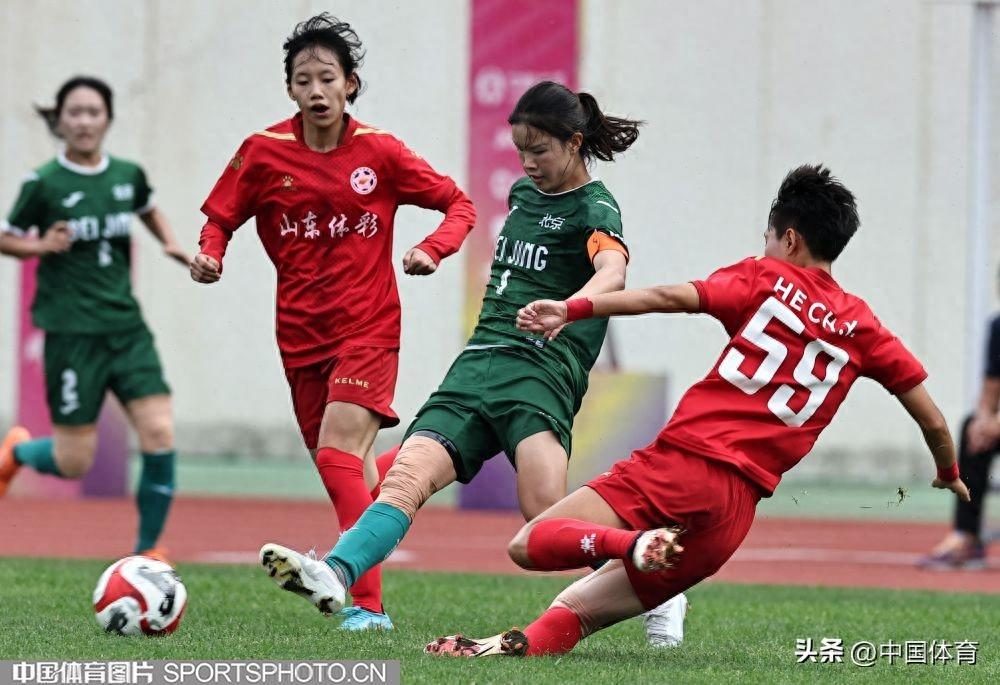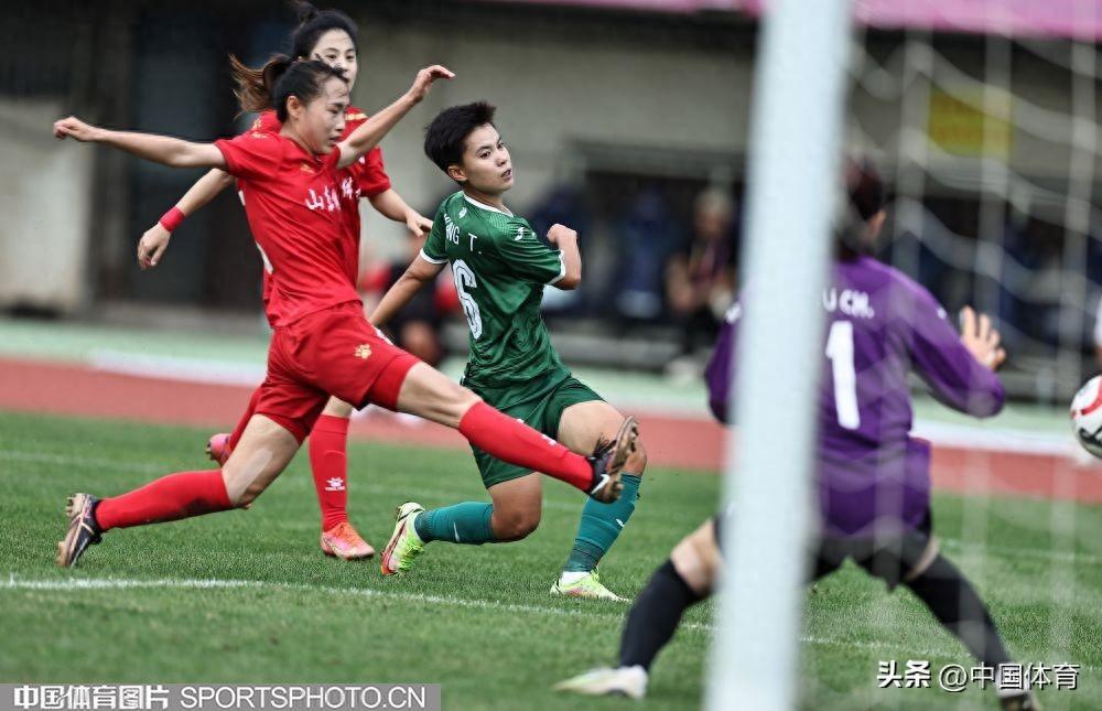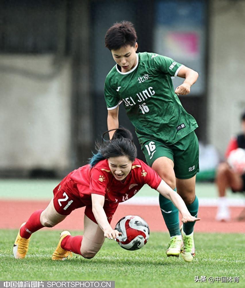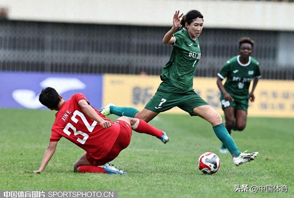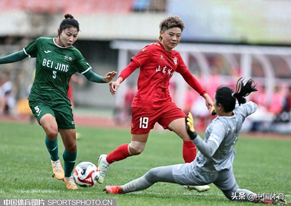 中國體育訊 8月27日,中國足球協會女子超級聯賽第14輪的一場比賽,在北京先農壇體育場進行。主場作戰的北京隊以1比1戰平山東隊。圖爲本場比賽的精彩瞬間。(中國體育圖片 王憲民 攝)