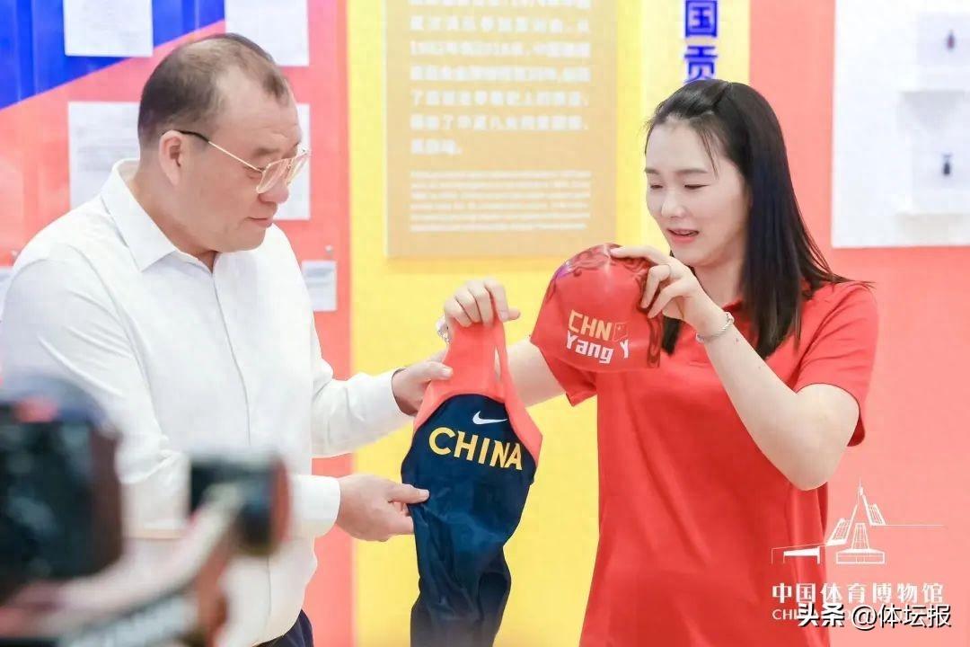 游泳世界冠軍、亞運冠軍楊雨向中國體育博物館捐贈2008年國家隊訓練泳衣、比賽泳帽。