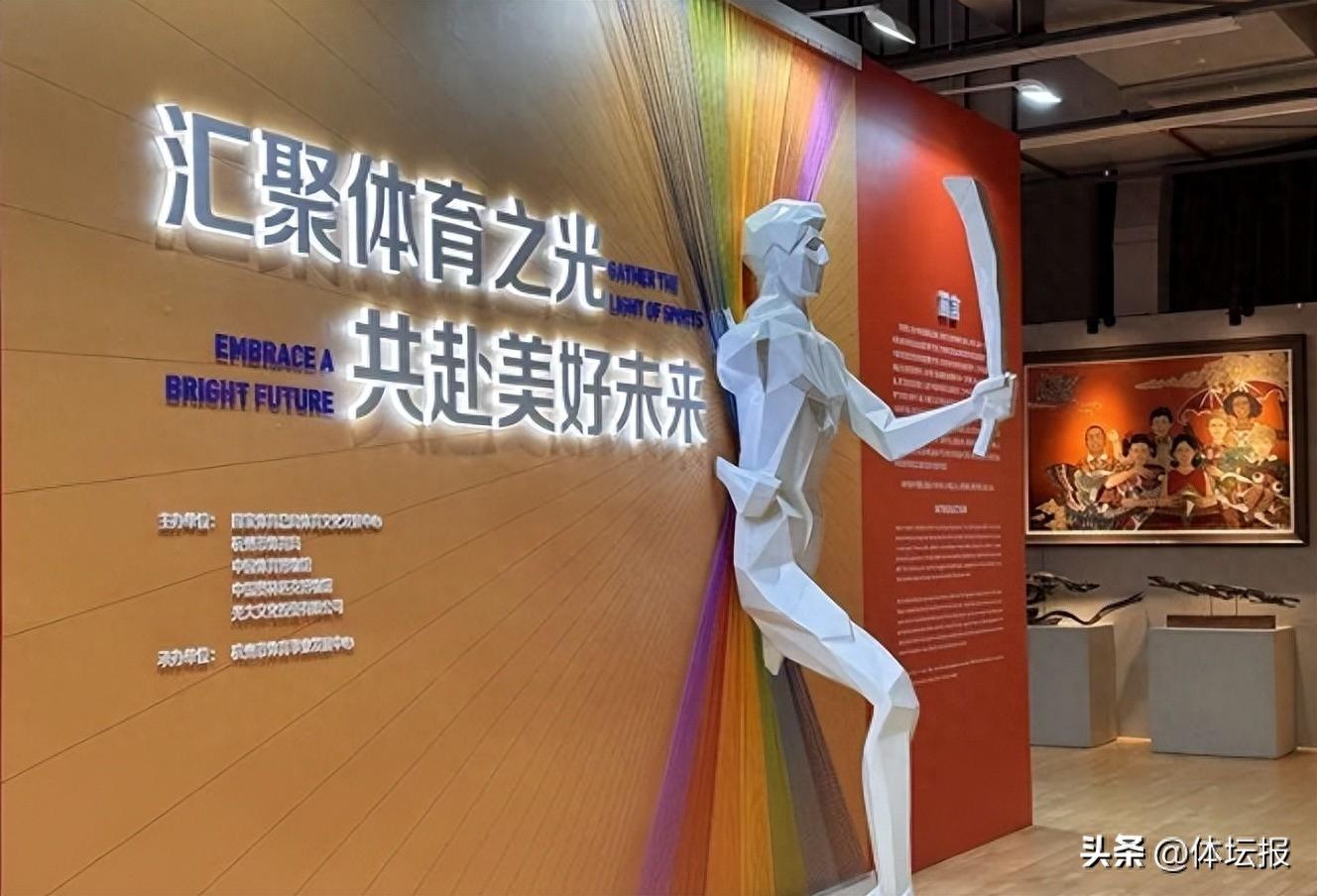 “匯聚體育之光 共赴美好未來”展設置在杭州全民健身中心,面向社會公衆開放。總展覽面積1000平方米,以中國體育博物館近現代體育文物藏品爲主,並展示面向社會公開徵集到的體育藝術作品。這裏不僅能夠看到2008年北京奧運會火炬祥雲、獎牌“金鑲玉”,劉翔2004年雅典奧運會奪得男子110米欄金牌時的破風戰袍,姚明的超大號簽名籃球鞋,1984年洛杉磯奧運會許海峯奪金後穿的頒獎服、2022年鹽湖城冬奧會時楊揚連拿兩金的頭盔。展覽共展出文物100餘件(套)、藝術作品300餘件,展覽將展出館藏曆屆奧運會火炬及獎牌,該展覽已被列爲亞運會期間人文體驗點。
