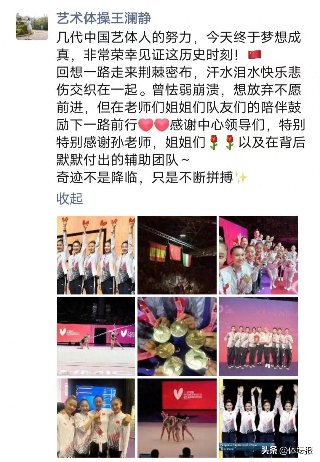 賽後,王瀾靜發朋友圈致謝