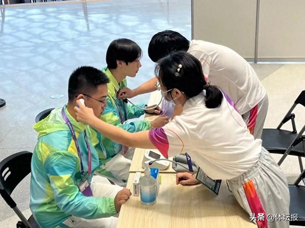 醫療間內,拿起聽診器,一邊傾聽着“受傷運動員”的心跳和心率,一邊迅速做出評估判斷,杭州游泳健身館醫療團隊工作人員王鑫在一切安頓就緒後,便在一旁的電腦前開始制定“醫療方案”。