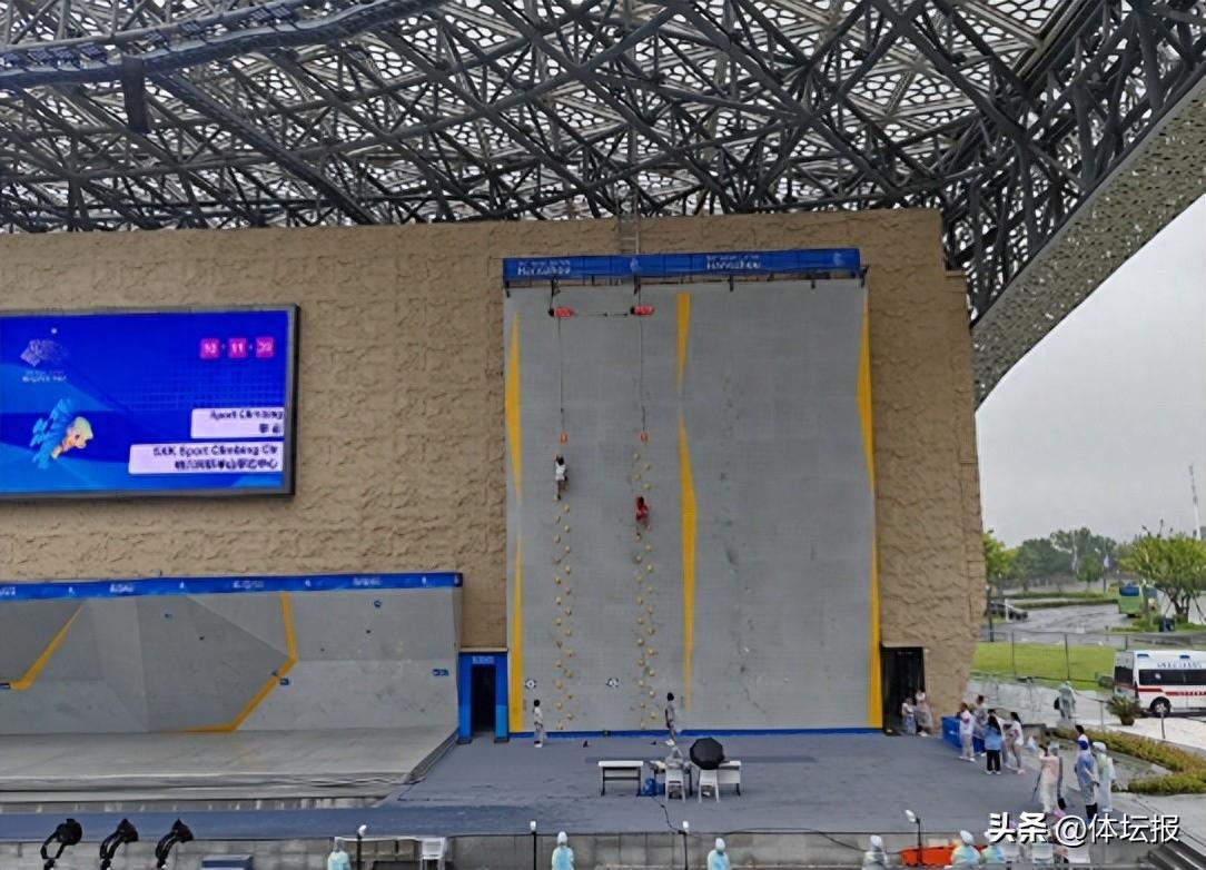 紹興柯橋羊山攀巖中心競賽區域的巖壁前,運動員們各就各位,隨着一聲令下,緊張刺激的攀巖比賽拉開帷幕,歡呼聲、叫好聲、鼓掌聲時不時從觀衆席傳出。而伴隨着這激烈的比賽,負責各個區域的工作人員和志願者們有條不紊進行着各自的工作,現場秩序井然有序。