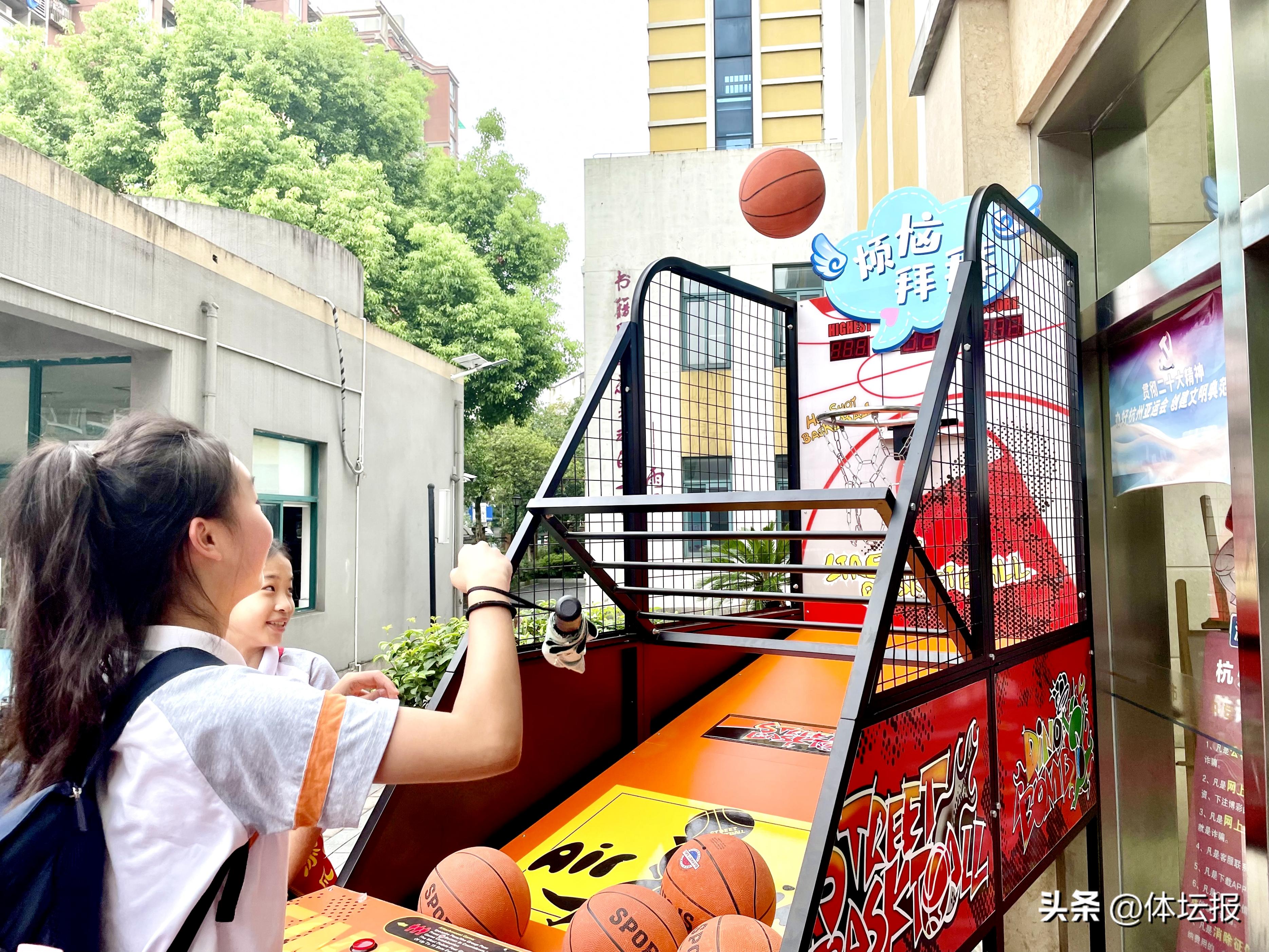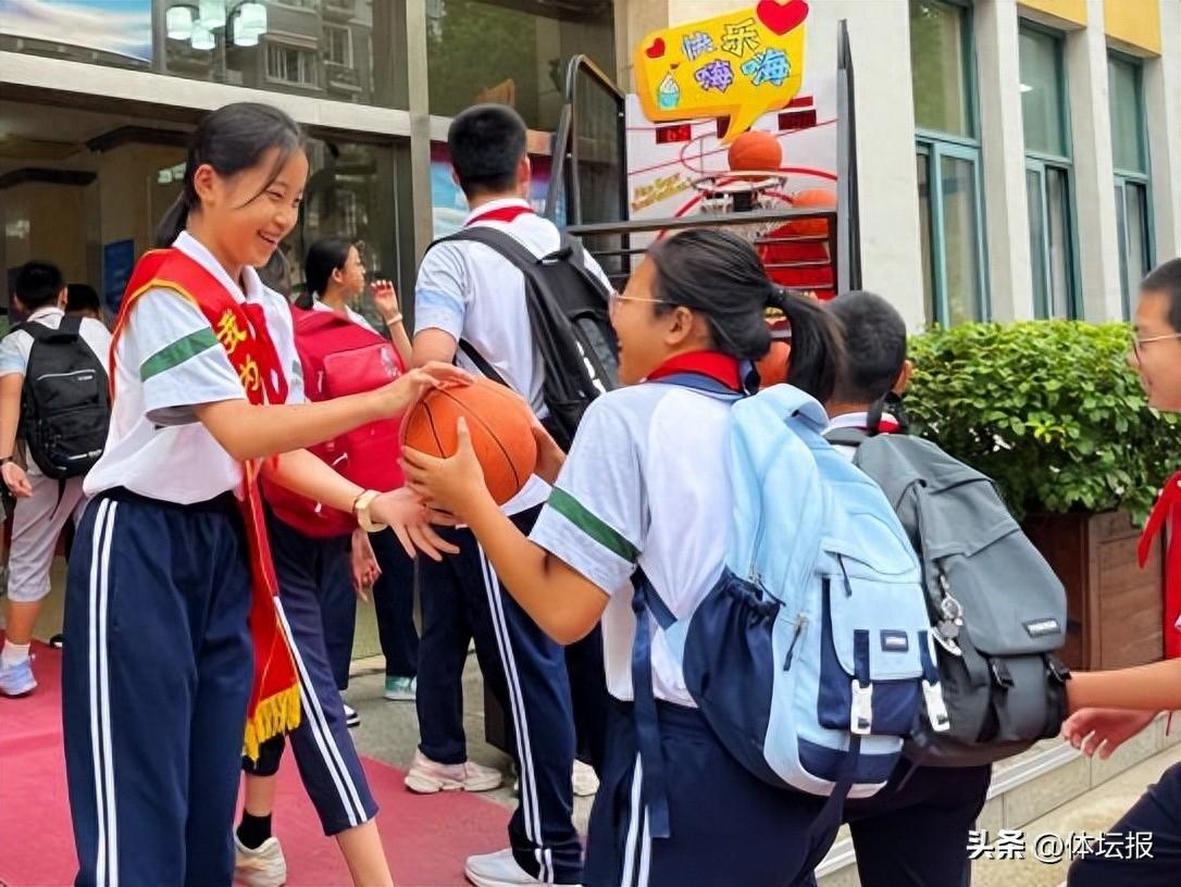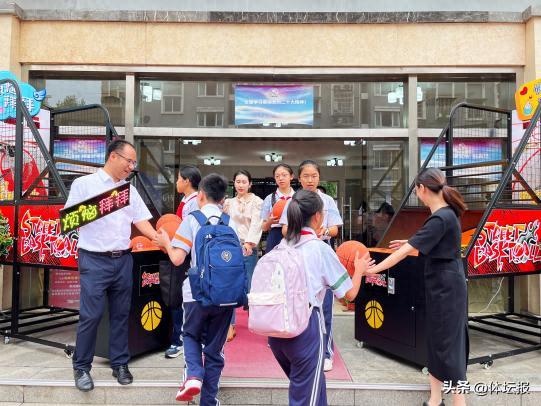 除此之外,在報到日當天的校門口,最受學生喜愛的“投籃機”以特殊的身份迎接每一位景荷學子快樂開學。學生們在進入校園時,以投籃的帥氣姿勢拋出“煩惱”、卸下“焦慮”,帶着舒暢愉悅的心情輕鬆上陣,元氣滿滿地開啓新學期。學生們還可以在投籃機的球上寫下自己近期的煩惱。“不想早起”、“害怕考試”、“還想放假”,一顆顆被煩惱包圍的籃球被投出,一顆顆壓在同學們心頭的石頭紛紛落下。“和所有的煩惱說拜拜,和所有的快樂說嗨嗨”,校長們紛紛舉着“開學快樂”應援燈牌,伴着歡快的音樂聲,開學快樂的氛圍感爆棚!