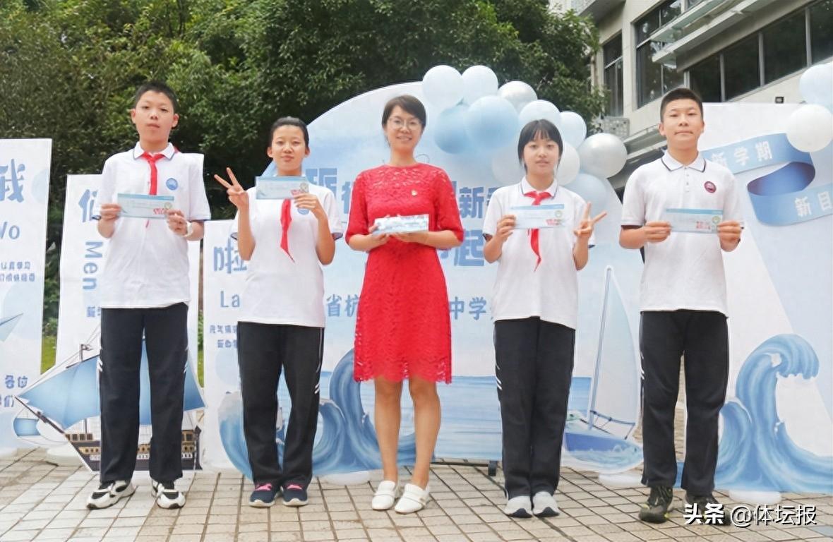 8月31日,杭州四季青中學2023學年開學典禮在一抹靚麗的天空藍亞運會主題背景下莊重地緩緩開始。每一位學生都收到了開學禮——滿含亞運元素的“夢想啓航”船票,同學們手持“夢想啓航”船票,於校門口“登船”開始新學期的夢想征程。