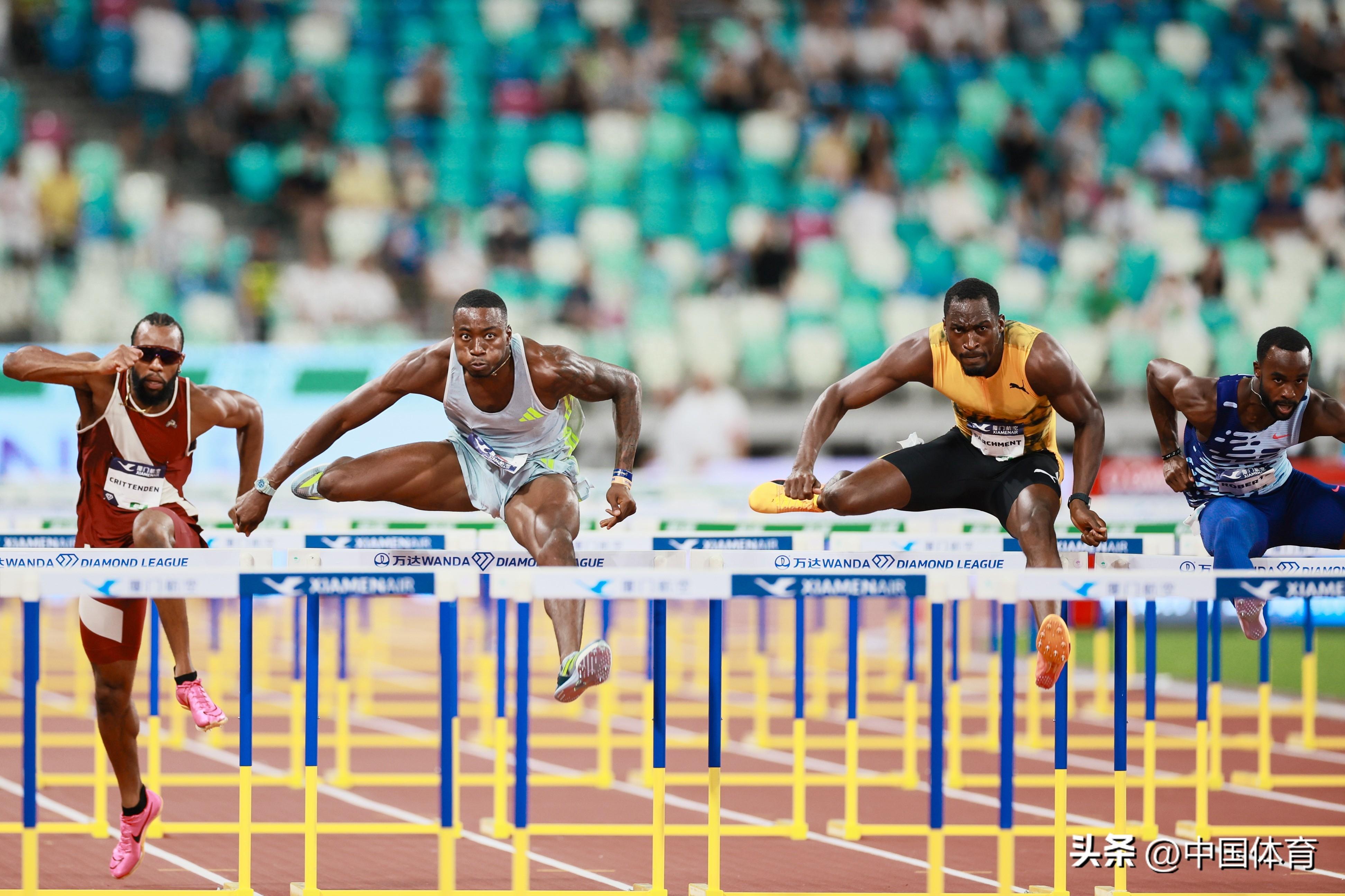男子110米欄決賽中,牙買加選手帕切門特以12秒96加冕桂冠,美國選手包攬亞軍和季軍。 中國選手徐卓一以13秒56排名第10位。