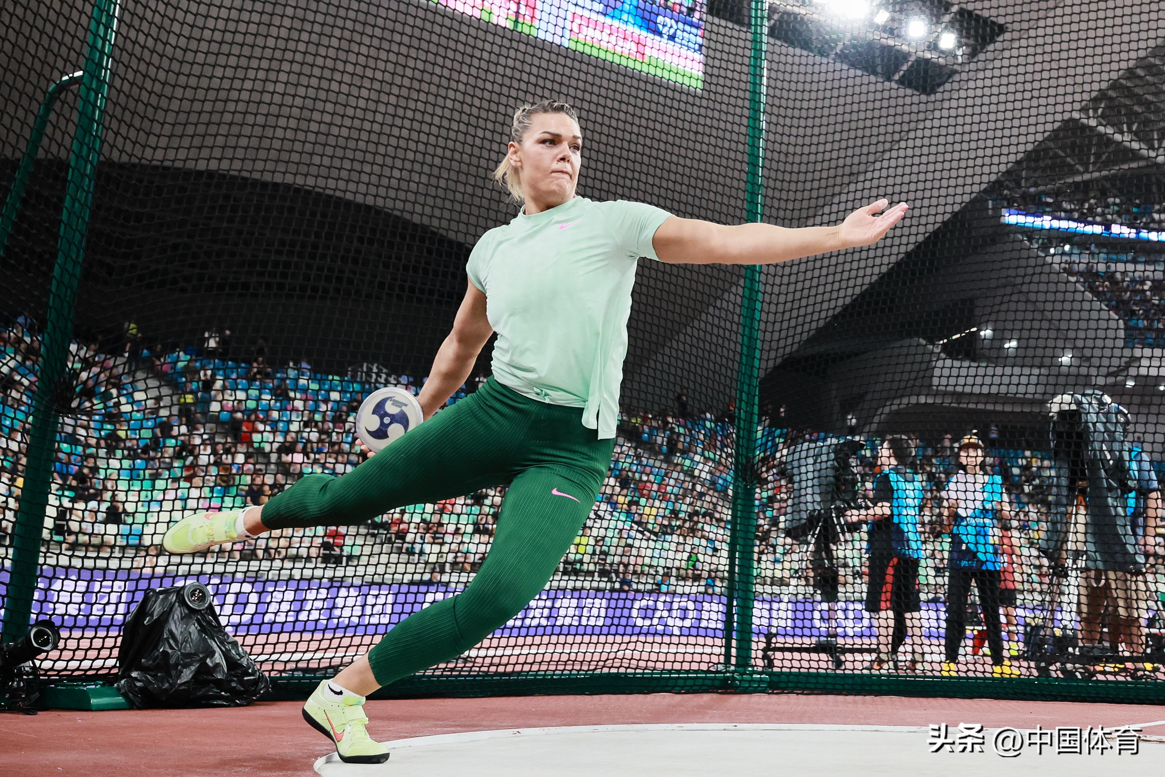 女子鐵餅決賽中,剛剛在布達佩斯田徑世錦賽上摘銅的中國女子鐵餅名將馮彬,憑藉最後一輪投出的67米41,勇奪金牌。克羅地亞名將佩爾科維奇以67米32獲得亞軍,美國名將、新科世界冠軍陶薩加狀態不佳,僅以64米31位列第三。另外兩名中國選手姜志超和王芳分別獲得第七名和第九名。