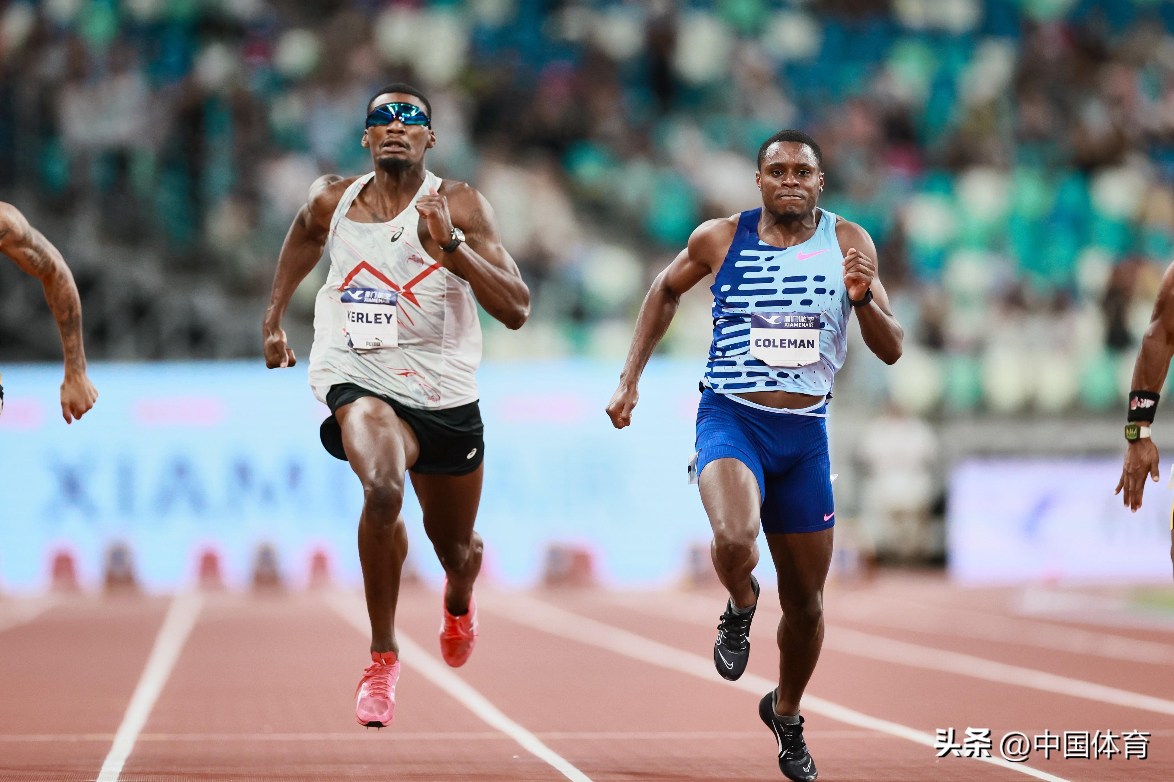 左起:美國選手克利、科爾曼在比賽中