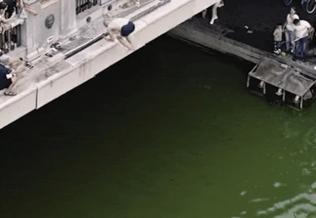 近日,天津跳水大爺火爆全網,不少人來到獅子林橋邊花樣跳水,奧運冠軍何衝也去體驗了一把。