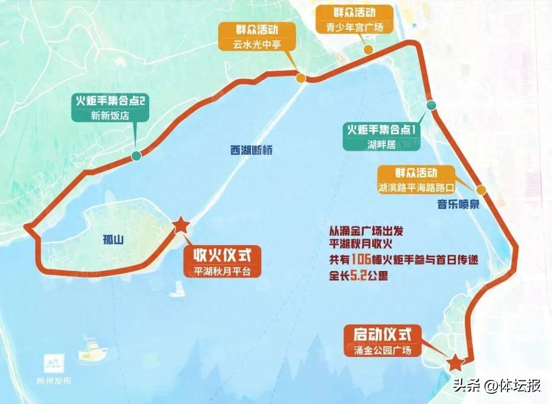 在綠意盎然的西子湖畔,向着亞運的夢想奔跑!火炬傳遞首日傳遞從杭州西湖湧金公園廣場出發,沿南山路—湖濱路—環城西路—北山街—西泠橋—孤山路傳遞,在“西湖十景”之一的平湖秋月收火。