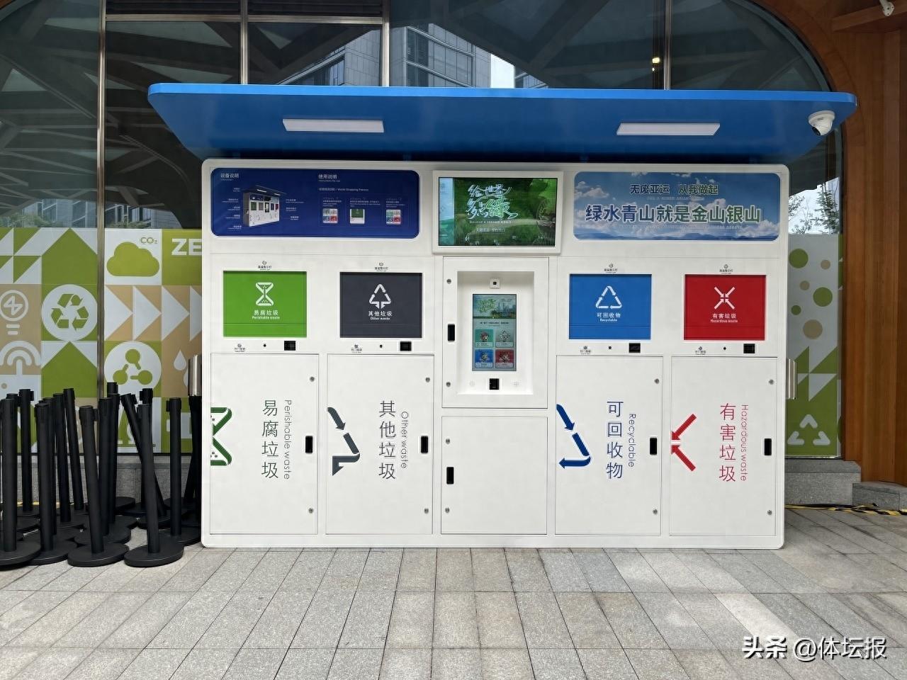 運動員村內的“無廢”生活館採用環保紙、循環物料及可回收塑料搭建而成,佈置採用節能燈具,通過展示低碳產品、互動遊戲、知識問答、手工DIY等方式宣傳無廢、綠色低碳及循環利用等理念。“無廢”生活館外設置了垃圾分類回收裝置,當記者將空礦泉水瓶扔入“其他垃圾”箱內後,通過手機掃碼,“雲上通”低碳賬戶卡上的積分即刻“到賬”。而村民們在村內踐行光盤行動、綠色出行、無塑料購物等綠色低碳行爲,都可積累綠色低碳積分,之後兌換積分以獲取禮品。以此通過線上與線下相結合的方式,吸引村民們“綠色行動”。