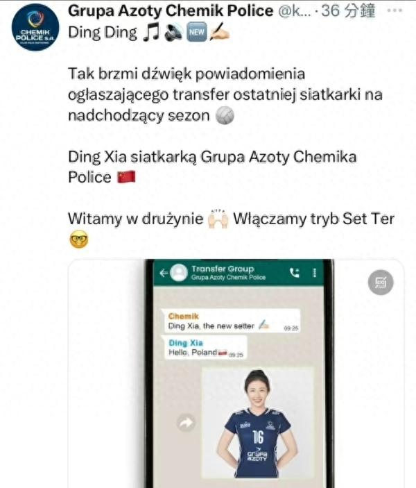 但今年下半年卻峯迴路轉,直接再次迴歸到了女排賽場上,而且還擠掉了之前重點培養的新人許曉婷。爲此不少球迷覺得,可能是因爲許曉婷確實是沒有達到蔡斌的預期,還需要磨練。而這兩次比賽又意義非凡,所以纔不得已請了半退役的丁霞。但就在昨天晚上半夜十點,被大家以爲只是“吉祥物”的丁霞,再次發佈震撼消息!她正式加盟了波蘭勁旅,波利採化工女排!着不僅不是半退役,反而還要繼續打下去的節奏啊!