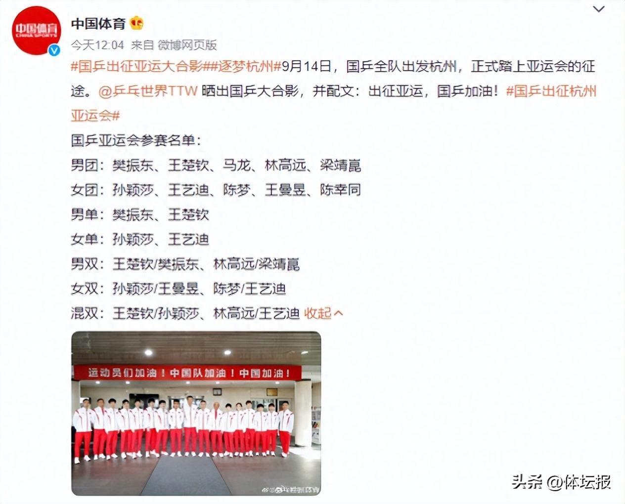 9月14日,國乒全隊出發杭州,正式踏上亞運會的征途。