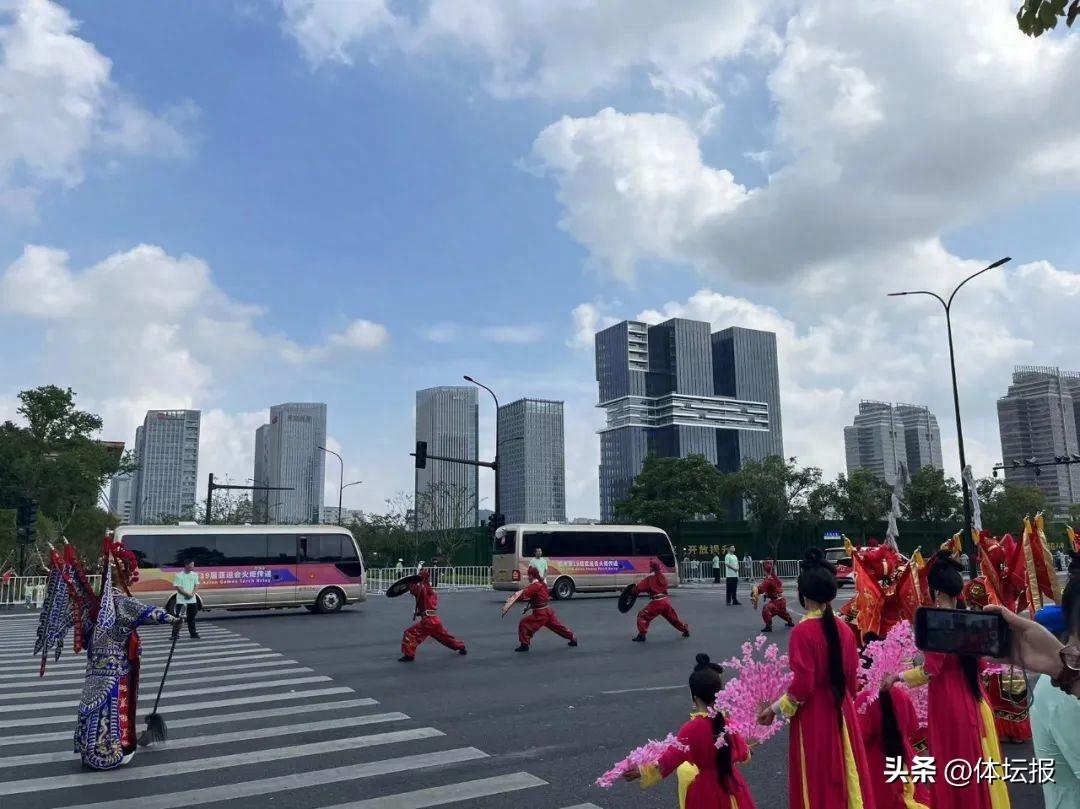 火炬所到之處,許多市民自發趕來,爲奔跑中的火炬手搖旗吶喊、加油助威,歡呼聲此起彼伏。“火炬傳遞到台州,我們台州人民都很激動的,對我們這個城市的美好度都會增加的,希望中國健兒能在亞運會取得好成績。”市民李海燕說。一路上,台州亂彈、黃沙獅子、三門牡丹龍等極具台州特色的節目輪番上演,一次次將傳遞活動的氛圍推向高潮,市民昂揚向上的精神風貌盡顯無遺。