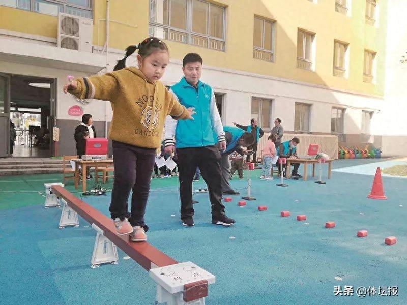 走平衡木通過離地面高30釐米長3米的平衡木,涉及視覺干擾,記錄孩子通過的時間,以反映孩子的動態平衡的能力。