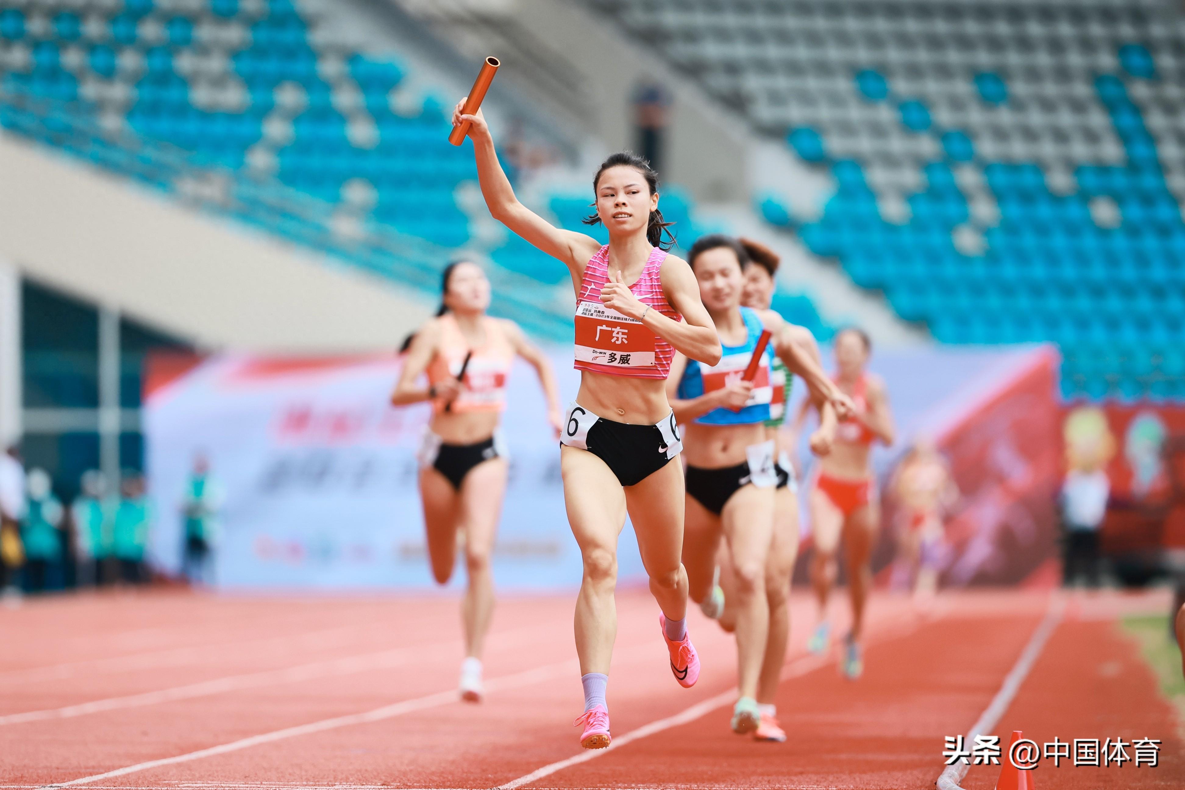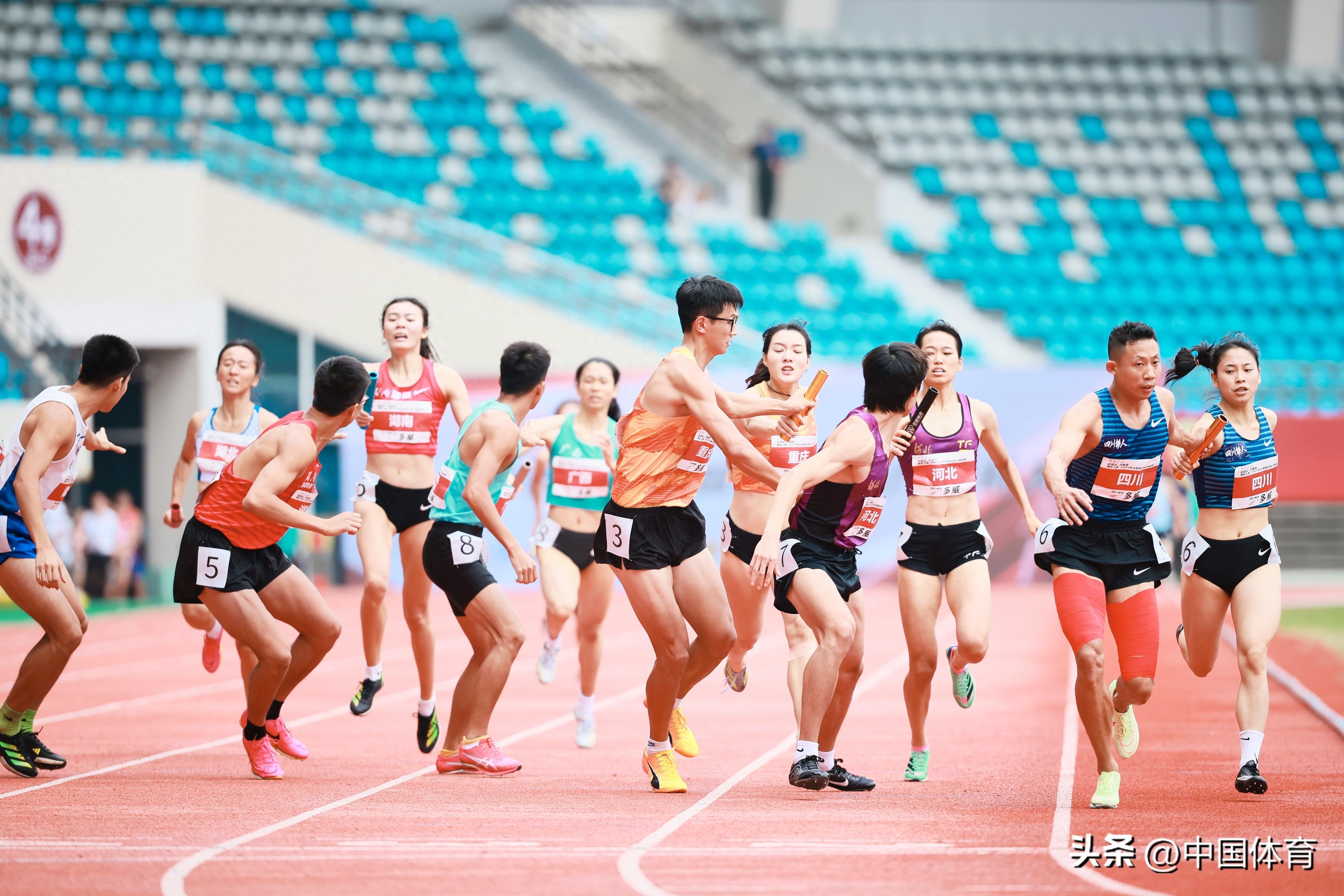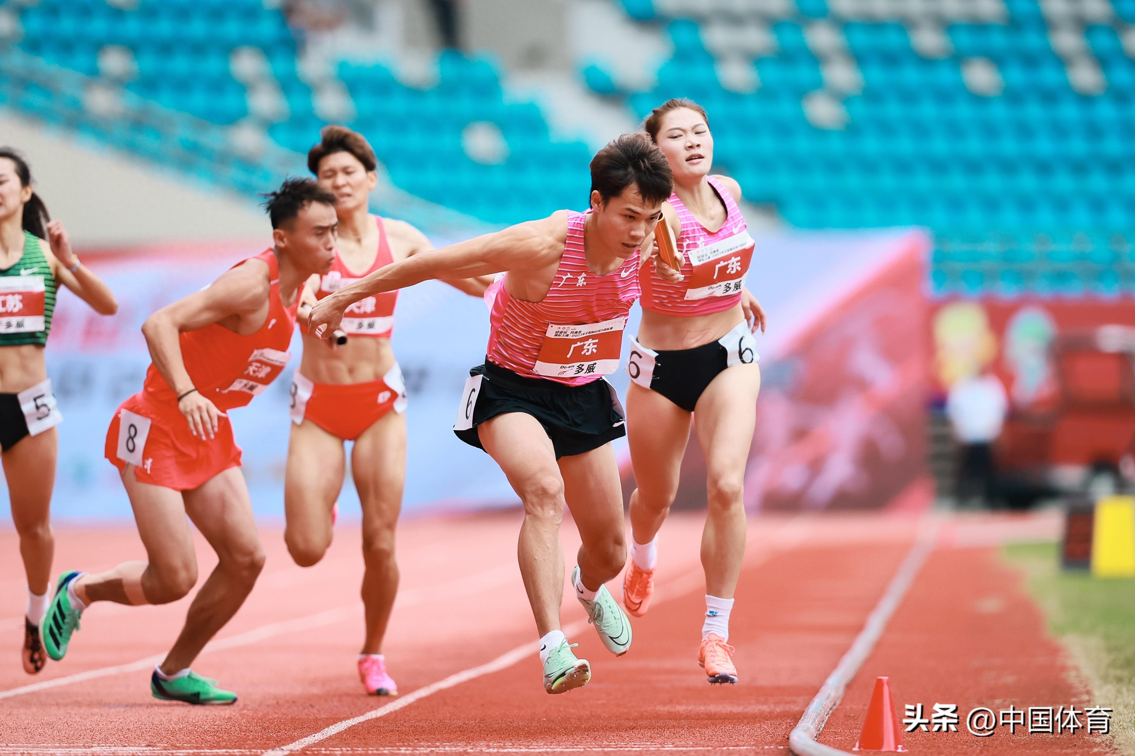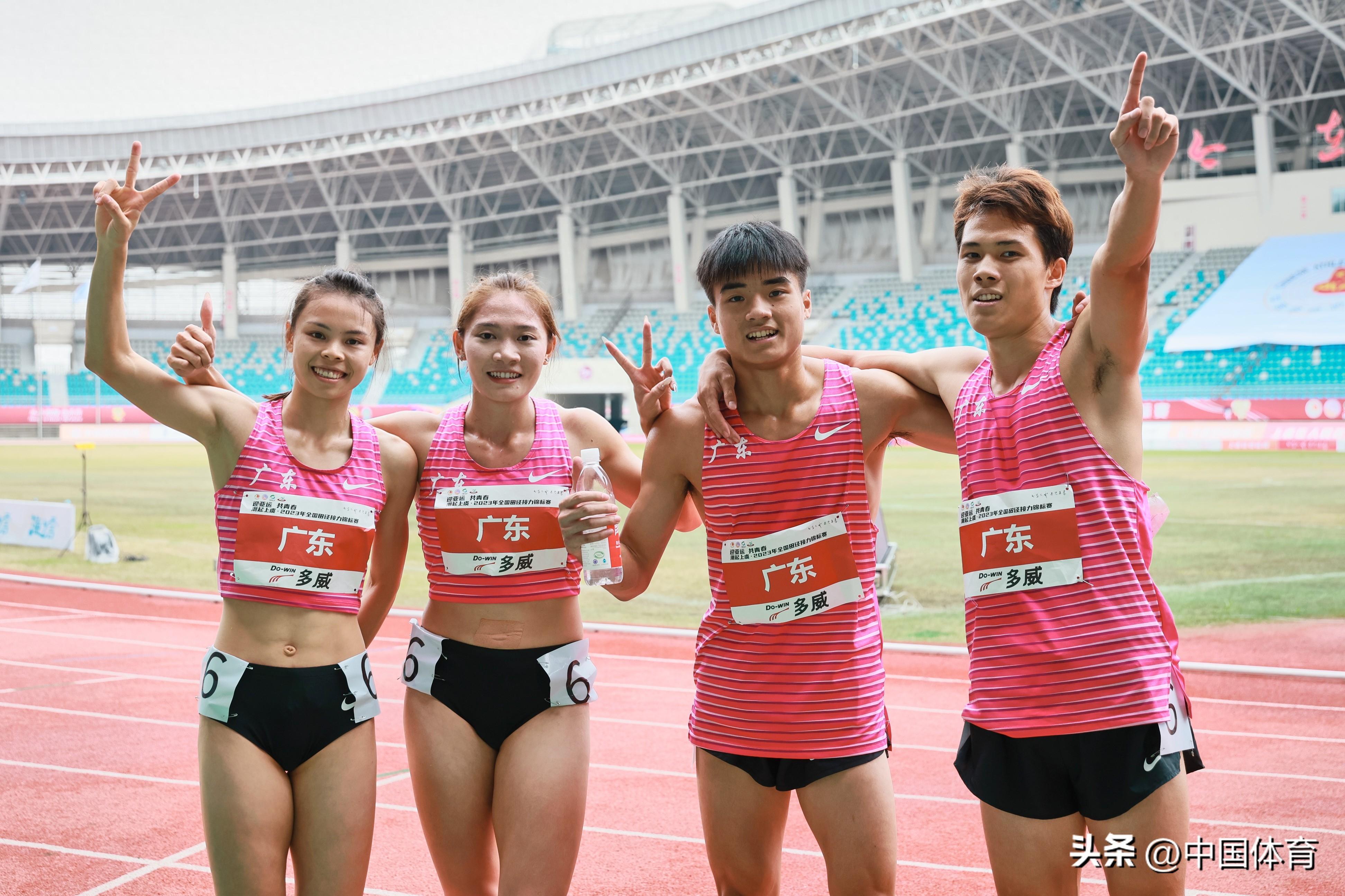 中國體育訊 9月15日,2023年全國田徑接力錦標賽在浙江省紹興市開賽。在上午進行的混合成年組4x400米接力決賽中,由梁寶棠、孔瑩鎣、李懿卿、莫家蝶組成的廣東隊以3分20秒16收穫金牌,由鄭馳宇、傅藝佳、劉凱、郝淼組成的山東中泰證券隊以3分21秒45獲得銀牌,由呂晟源、蔣暄、肖衡、劉雨彤組成的江蘇鐵人隊以3分21秒89排名第三位。(中國體育圖片 鹿麟 攝)