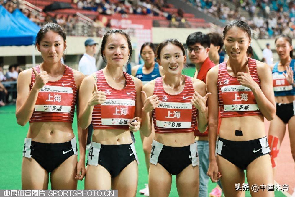 上海隊許雙雙(左三)、葉淑琪(左四)交接棒