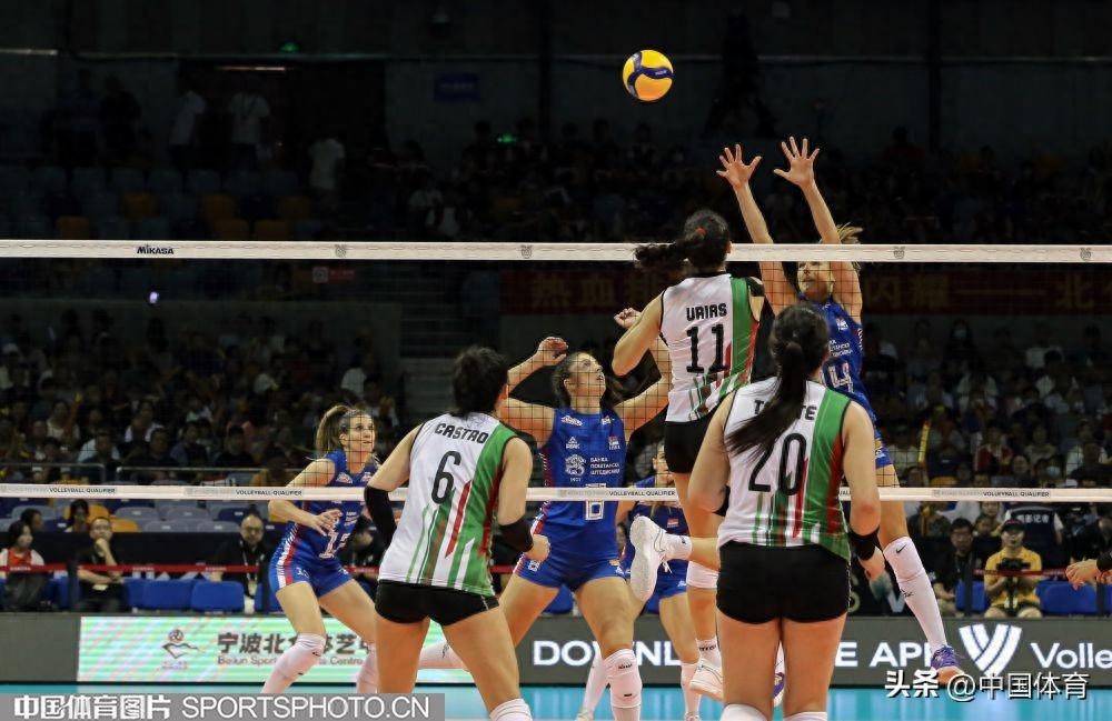 中國體育訊 9月16日,巴黎奧運會女子排球資格賽A組比賽在寧波北侖正式打響。首場比賽,塞爾維亞隊以3比0擊敗墨西哥隊。圖爲比賽場景。(中國體育圖片 劉亞茹 攝)