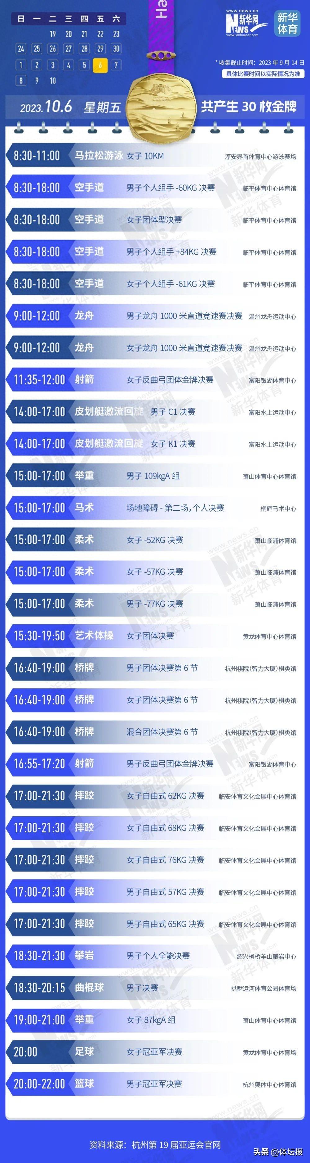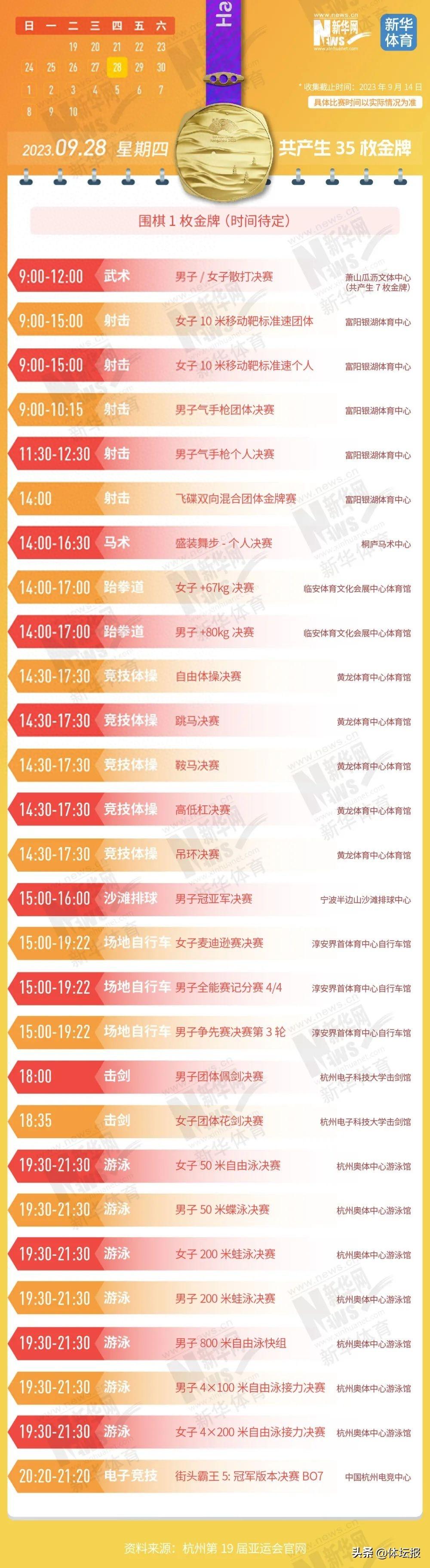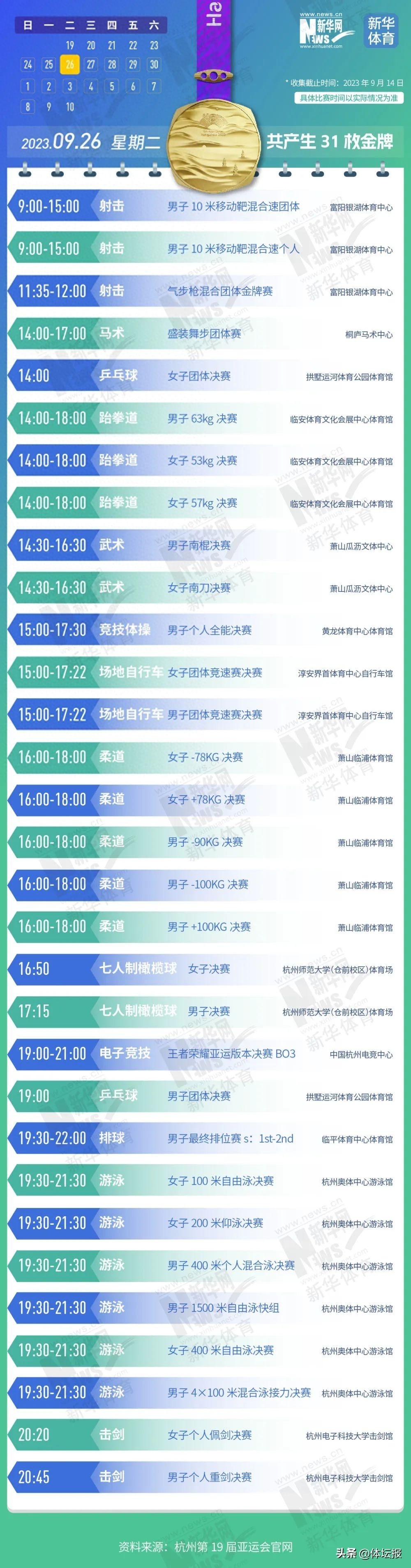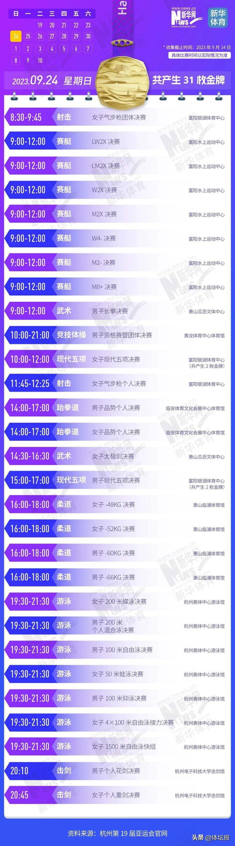 至此本屆亞運會481個小項的金牌產生日期全部確定。