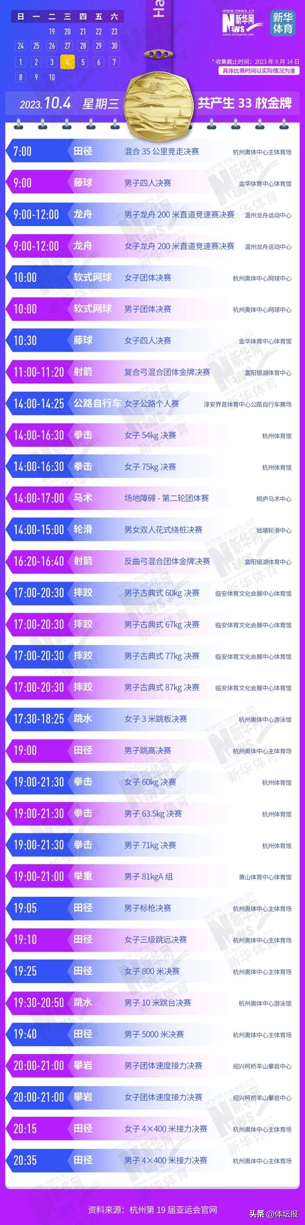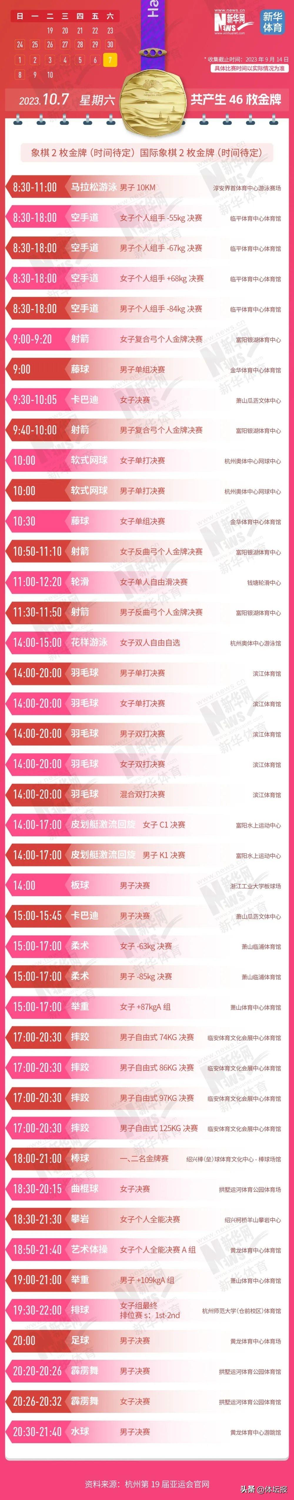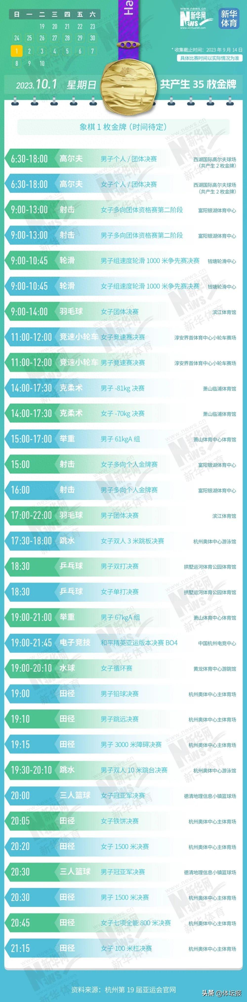 收藏!亞運會481枚金牌產生時間,給你列好了→