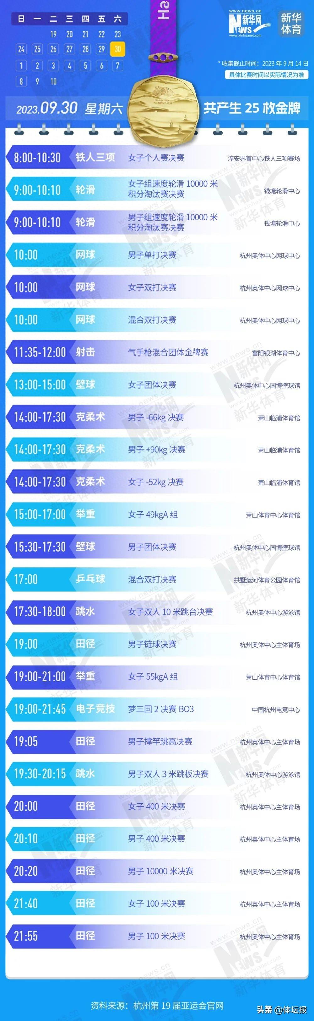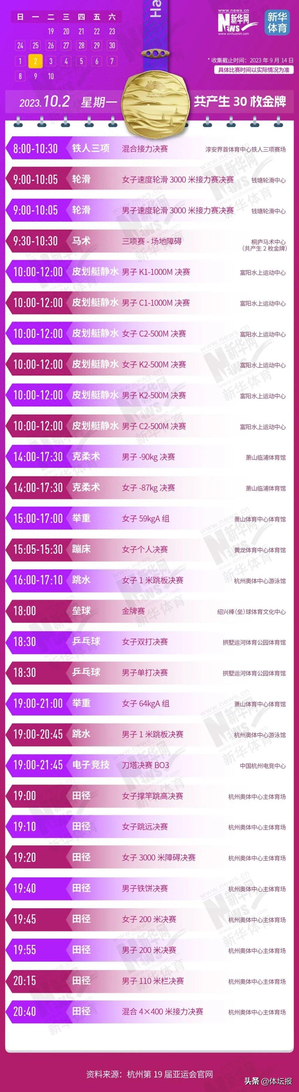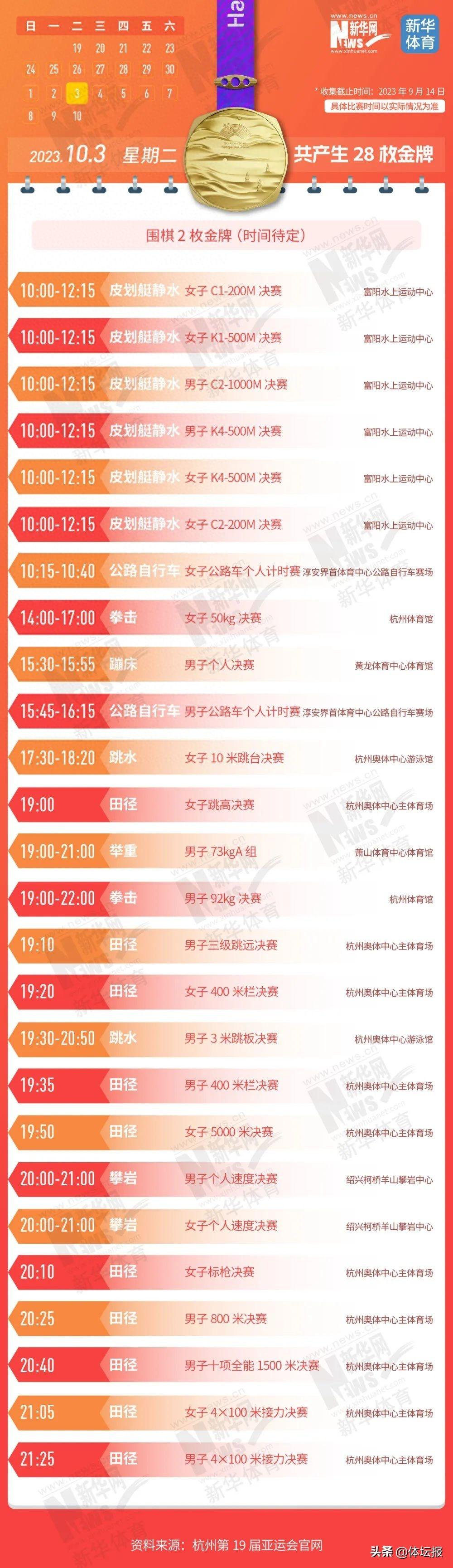 收藏!亞運會481枚金牌產生時間,給你列好了→