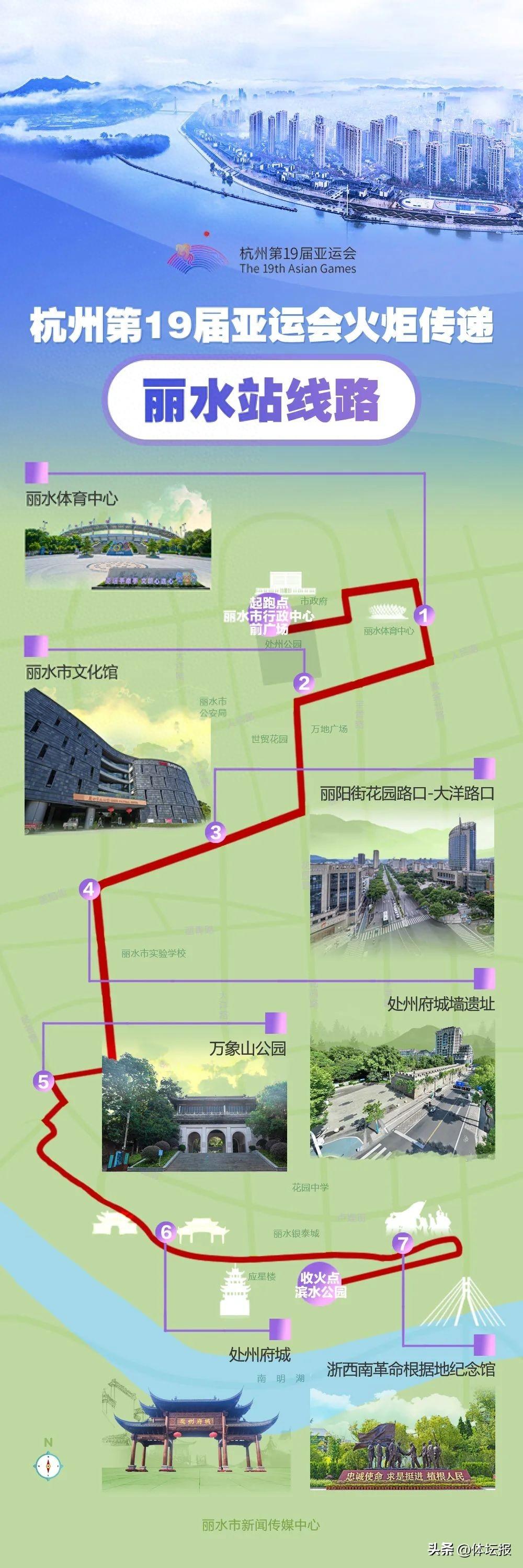 本次傳遞活動以“秀山麗水 青年之城”爲主題,傳遞路線從市行政中心前廣場出發,隨後途經體育中心、大劇院、花園路、麗陽街、中山街、處州府城、應星樓、銀泰城、江濱綠道等城市地標,終點爲濱水公園。傳遞路線以綠爲底,充分展示麗水“紅綠金”融合協調發展新圖景。