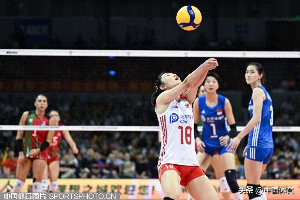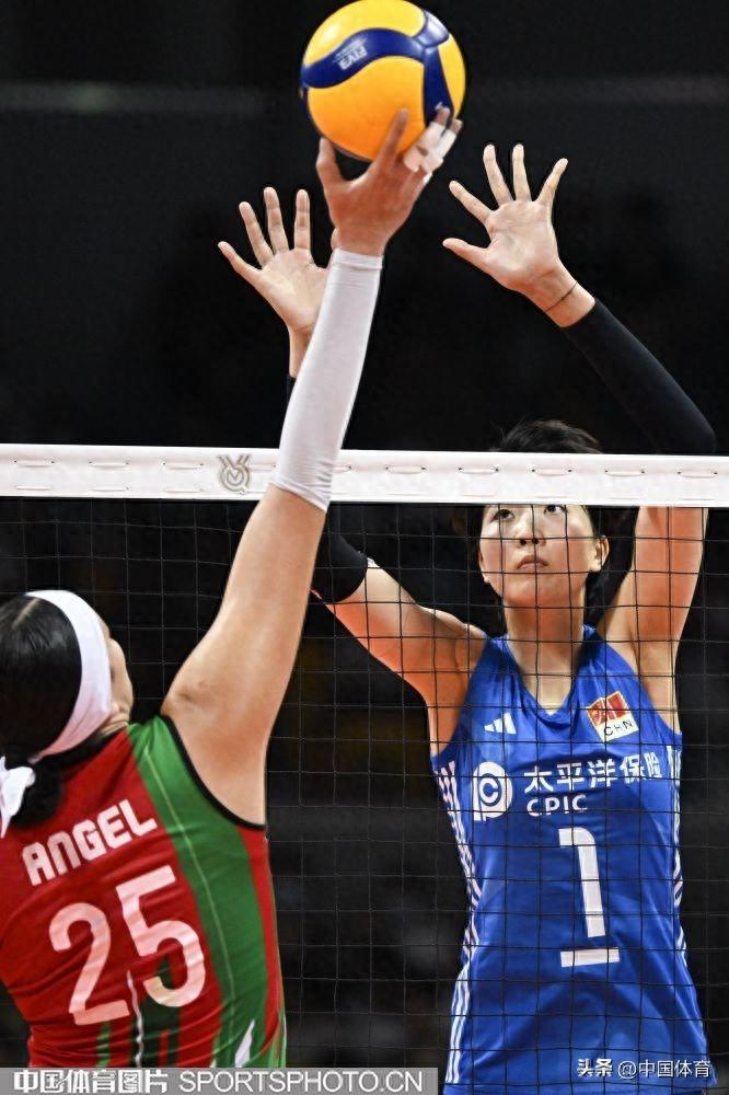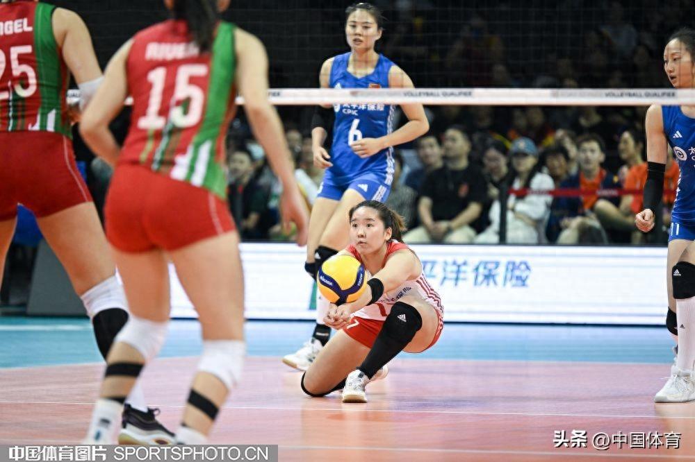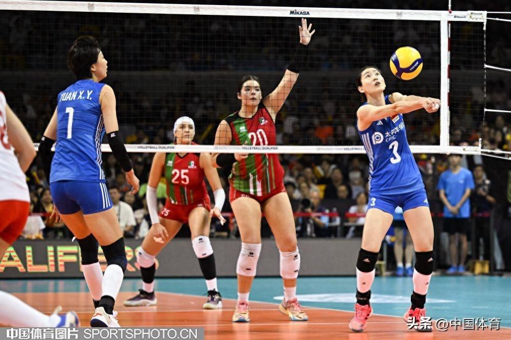 中國體育訊 9月17日晚,在巴黎奧運會女子排球資格賽A組第二場比賽中,中國隊以3比0戰勝墨西哥隊,取得兩連勝。三局比分爲25比14、25比18、25比7。 (中國體育圖片 倪敏哲 攝)刁琳宇起球(左起)李盈瑩、王夢潔、袁心玥、刁琳宇、龔翔宇慶祝得分自由人王夢潔起球丁霞傳球王媛媛扣球刁琳宇(左)、王媛媛攔網王雲蕗(左)、袁心玥慶祝得分袁心玥攔網倪非凡起球