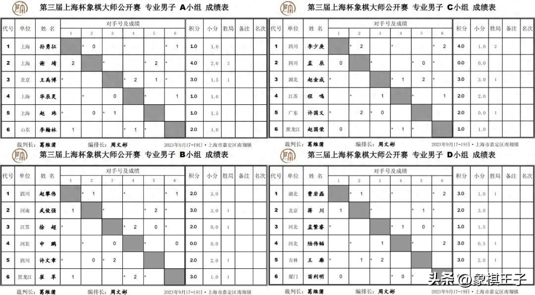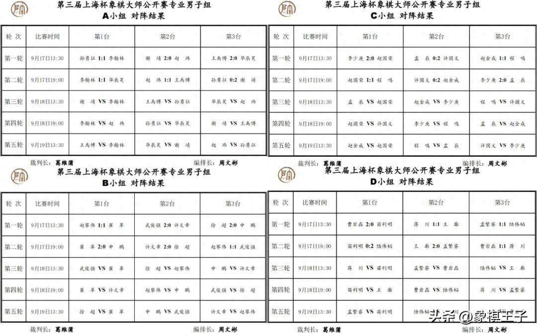 C組李少庚4,趙金成3,許國義、程鳴2,趙國榮1,孟辰0;D組王廓、陸偉韜、曹巖磊3,蔣川2,孟繁睿1,苗利明0。