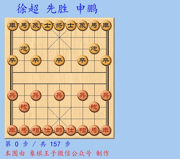 申鵬是日同樣拼鬥良久,執黑對蘇軍少帥、姑蘇飛鷹徐超,紅以車馬冷着,落相露中帥,擊開城門。