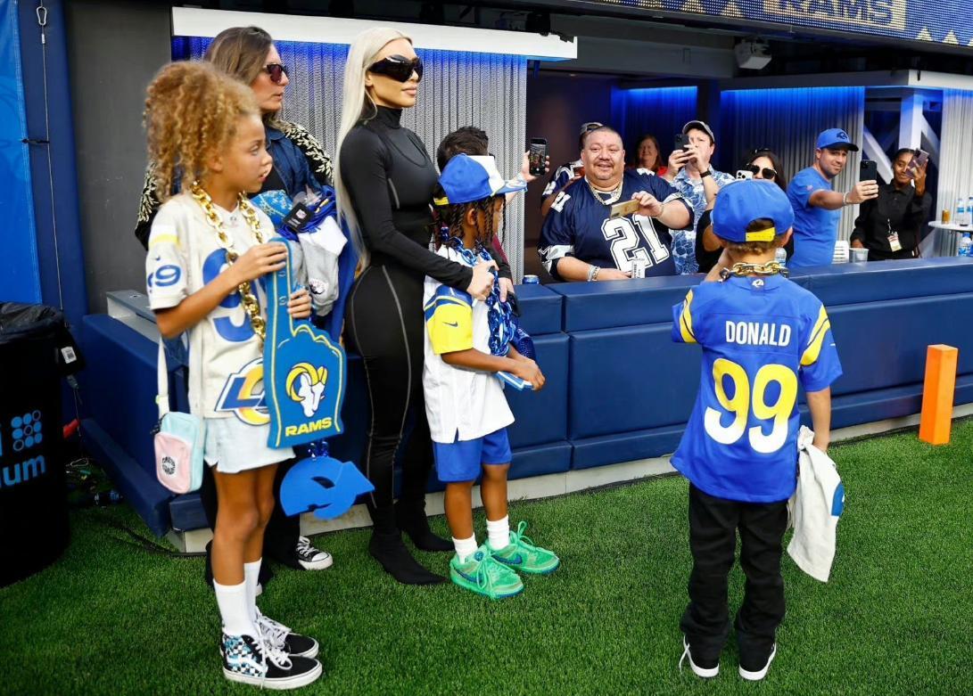 當地時間10月10日,金卡戴珊(Kim Kardashian)帶着兒子Saint現身橄欖球比賽,非常興奮,爲LA公羊隊加油喝彩,美美共度親子時光。