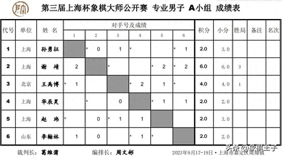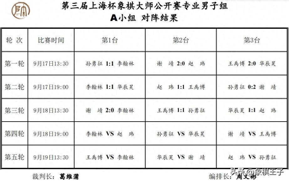 本組當中,王禹博戰平孫勇徵,華辰昊弈和趙瑋,三輪後,謝靖三勝6分,入圍一步之遙,王禹博4分,其他人均2分。