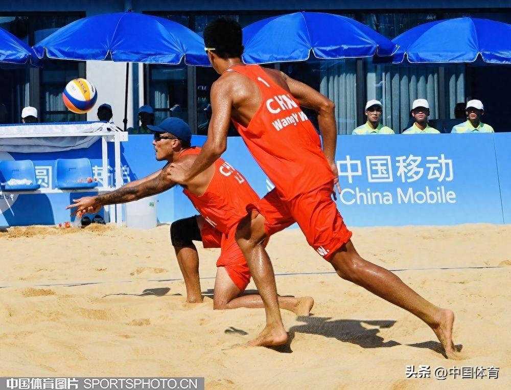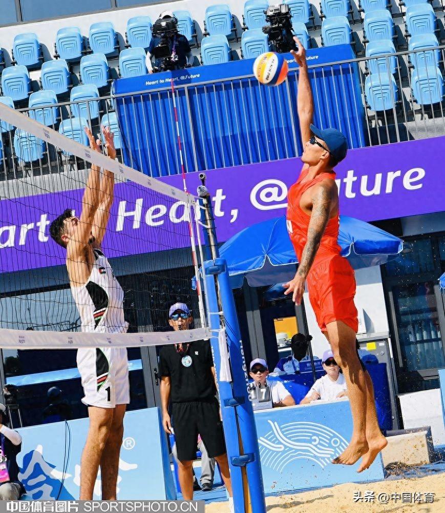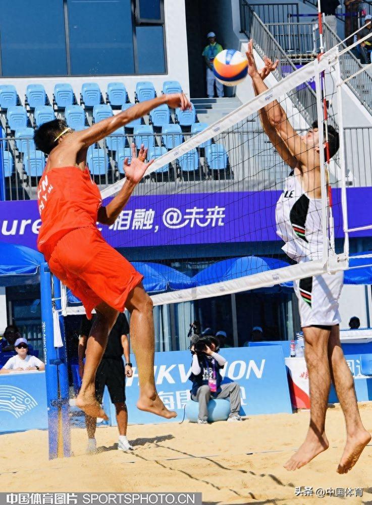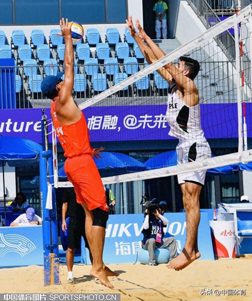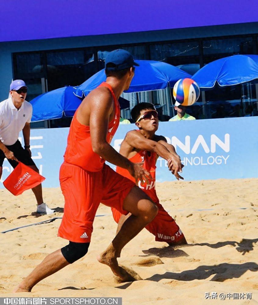 中國體育訊 9月19日上午,杭州亞運會沙灘排球男子預賽在寧波半邊山沙排中心正式開賽。首場比賽中,率先出場的中國組合王延偉/李傑以2比0戰勝巴基斯坦組合,收穫開門紅。兩局比分爲21比14、21比16。(中國體育圖片 劉亞茹 攝)中國隊李傑、王延偉(右)在比賽中王延偉(左)進攻李傑(左)進攻李傑墊球巴基斯坦隊員救球李傑進攻王延偉在比賽中
