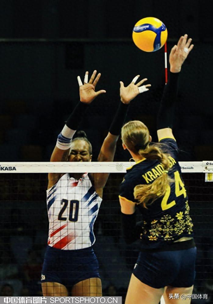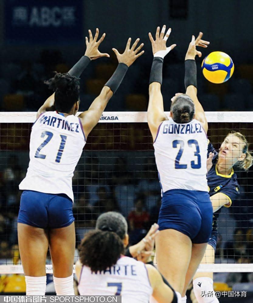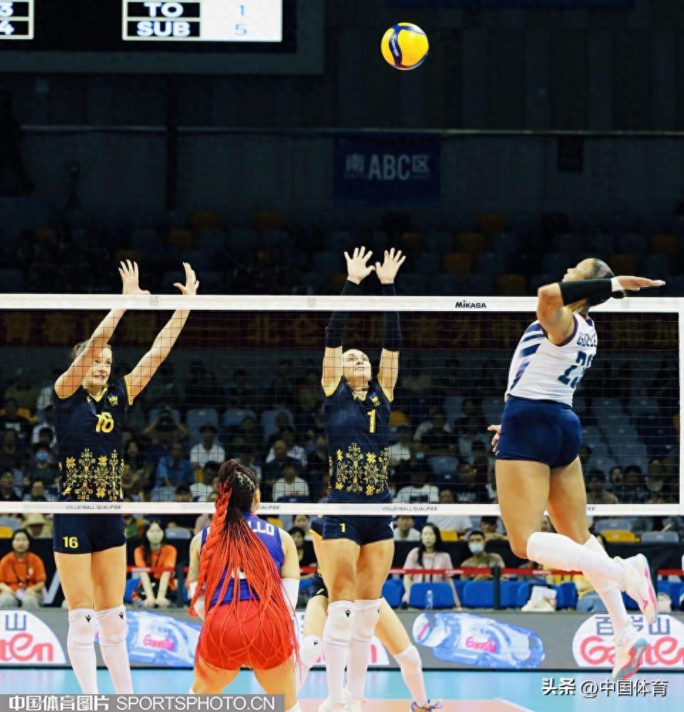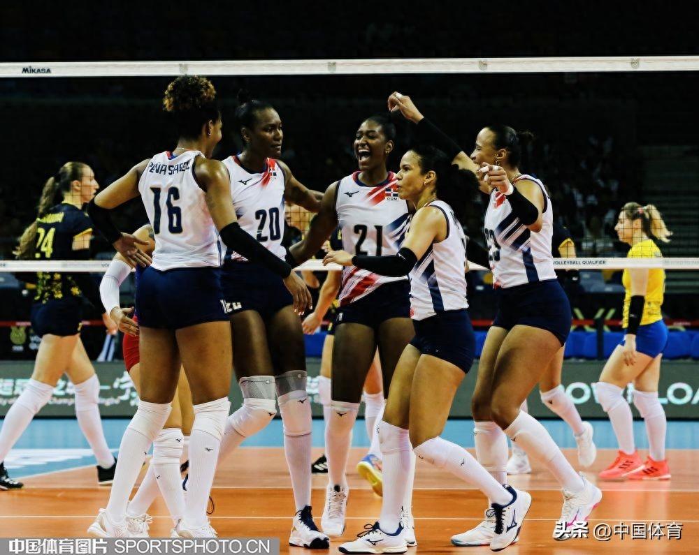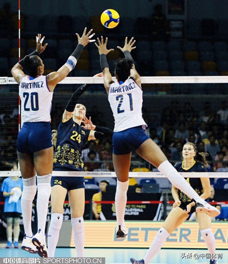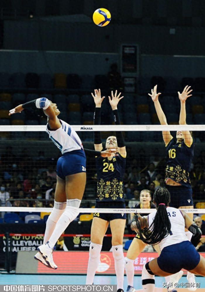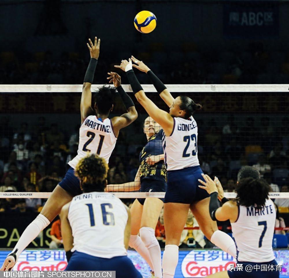 中國體育訊 9月19日,巴黎奧運會女子排球資格賽A組比賽在寧波北侖進入第三日的爭奪。多米尼加隊3比0擊敗烏克蘭隊,三局比分爲25比17、25比21、31比29。多米尼加隊靈魂人物大馬丁內斯全場共得到25分,是本場比賽的最佳球員。圖爲比賽場景。(中國體育圖片 劉亞茹 攝)