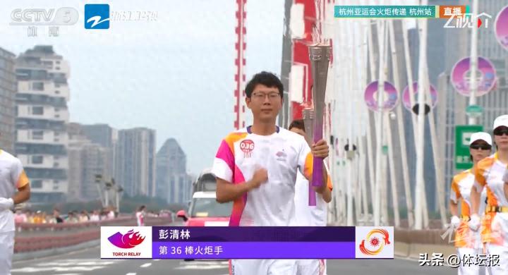 本站第36棒的火炬手,是幾個月前跳橋救人的外賣小哥彭清林。今天正好是他救人後的第99天。而他傳遞火炬的位置,正是6月13日下午他跳江救人的杭州西興大橋(錢江三橋)。