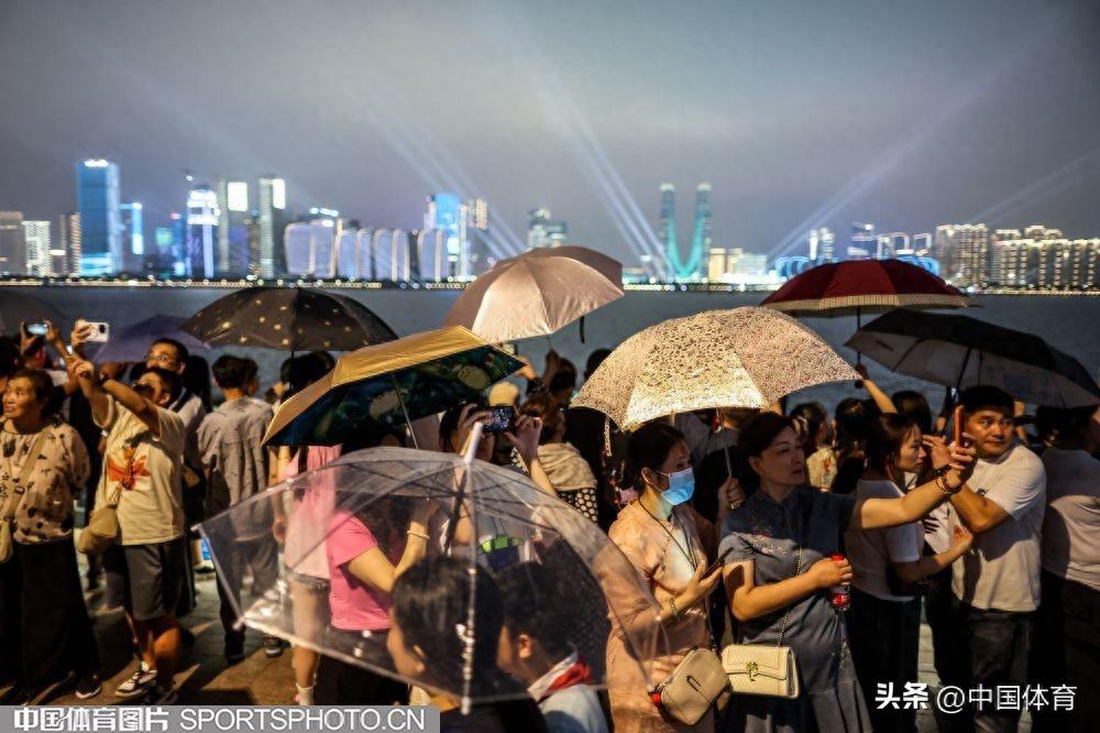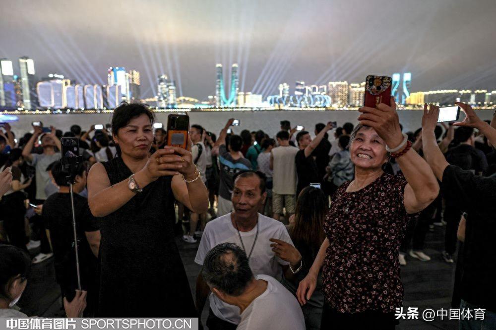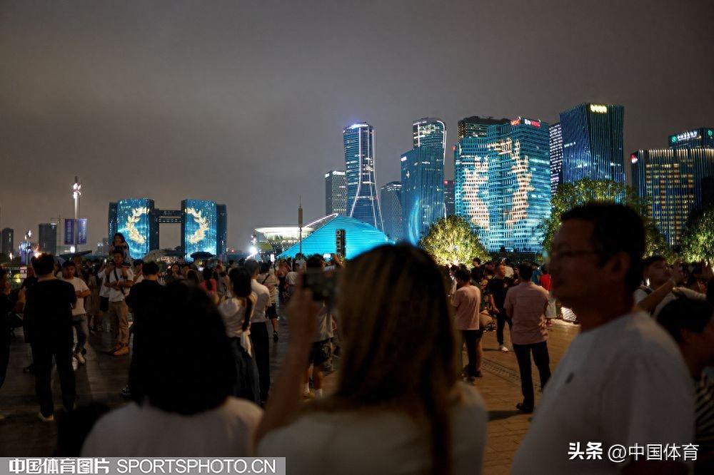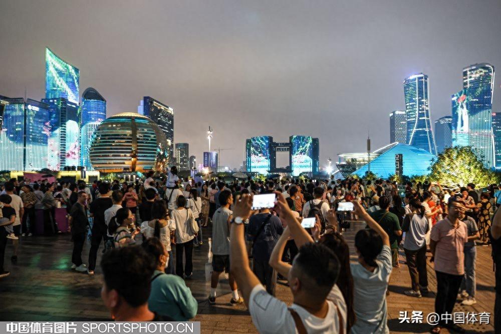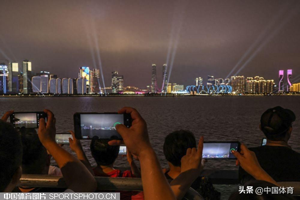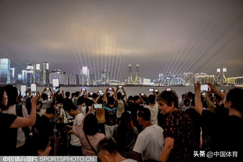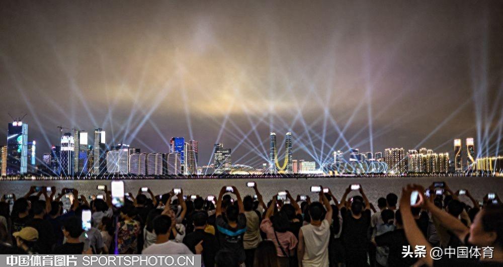 中國體育訊 9月20日,浩如煙海的市民和五湖四海而來的遊客們匯聚在錢塘江畔欣賞杭州城市陽臺燈光秀。圖爲燈光秀現場。(中國體育圖片 安靈均 攝)