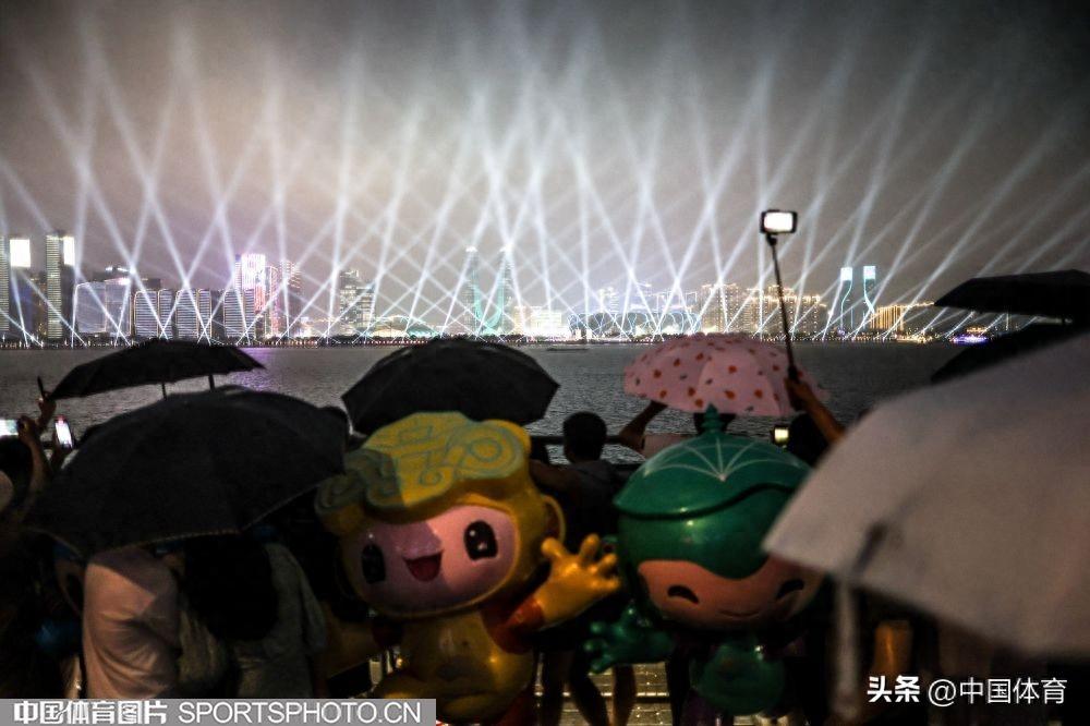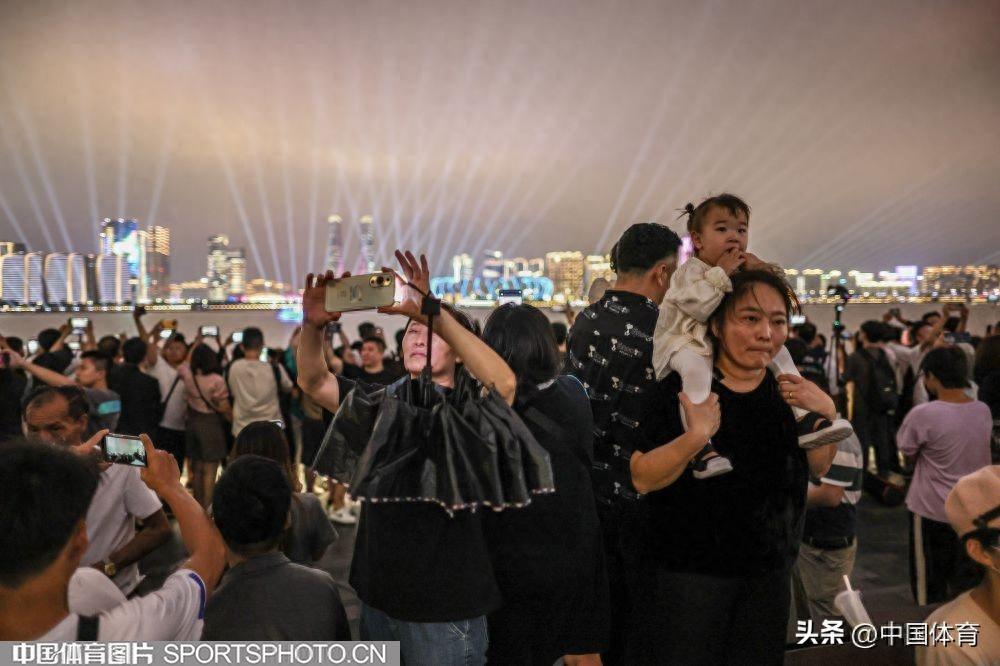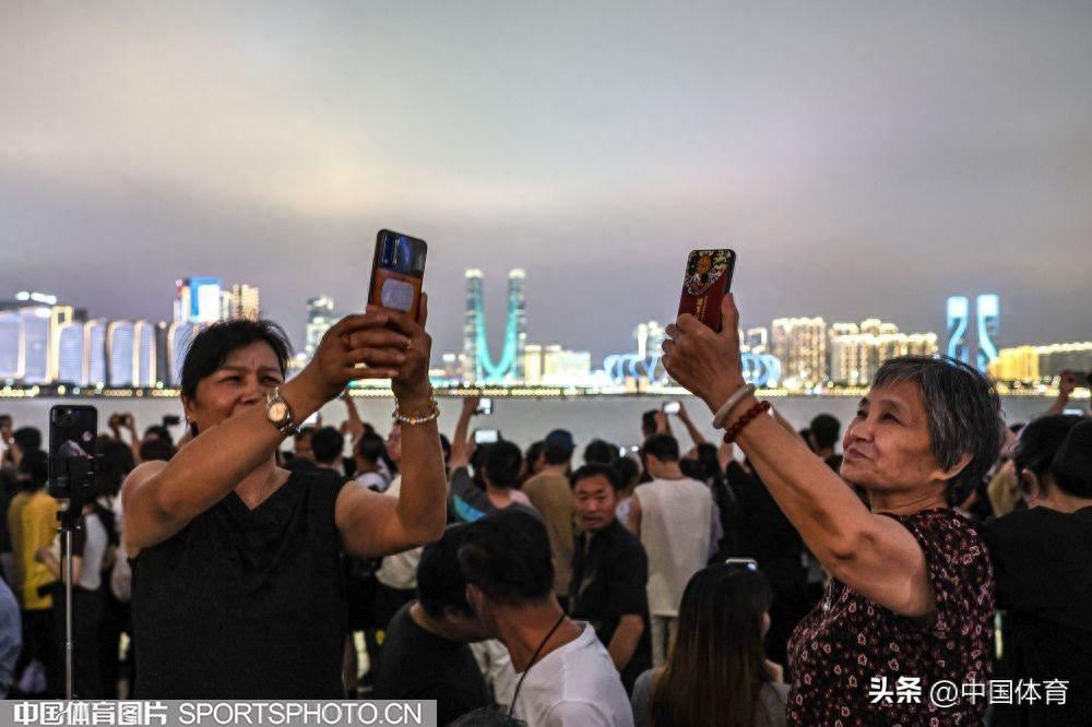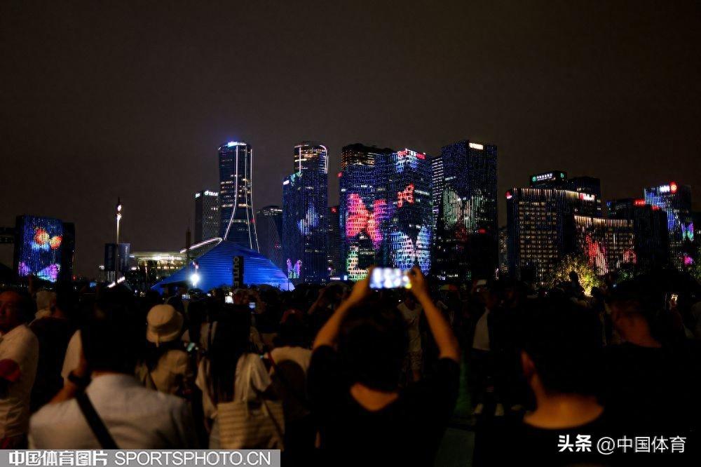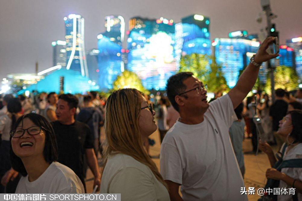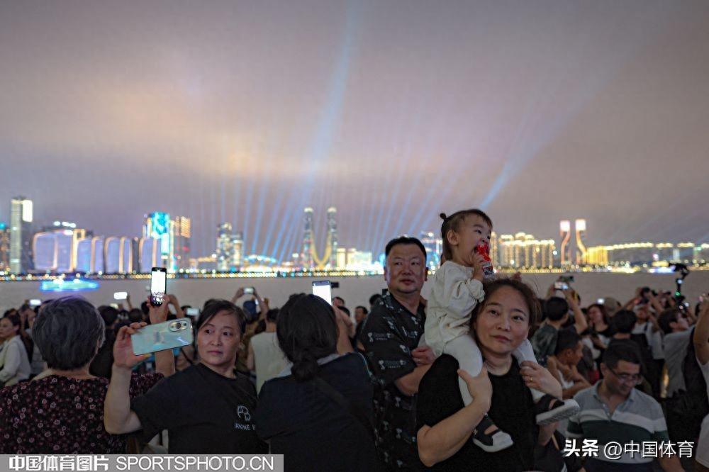 中國體育訊 9月20日,浩如煙海的市民和五湖四海而來的遊客們匯聚在錢塘江畔欣賞杭州城市陽臺燈光秀。圖爲燈光秀現場。(中國體育圖片 安靈均 攝)