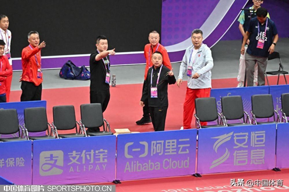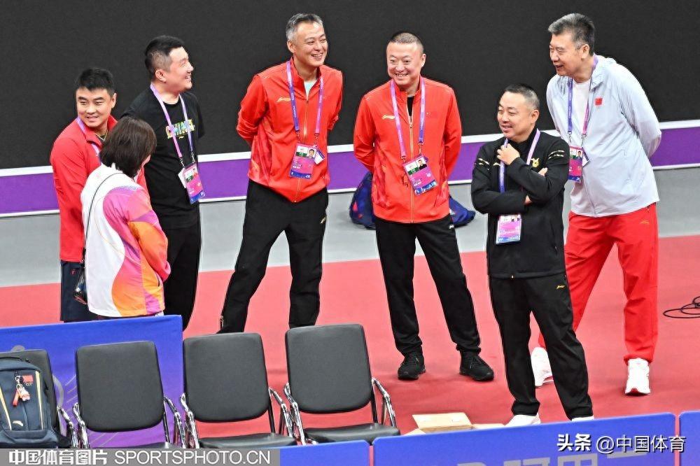 劉國樑、秦志戩、李隼、馬琳、邱貽可等觀看孫穎莎、錢天一訓練
