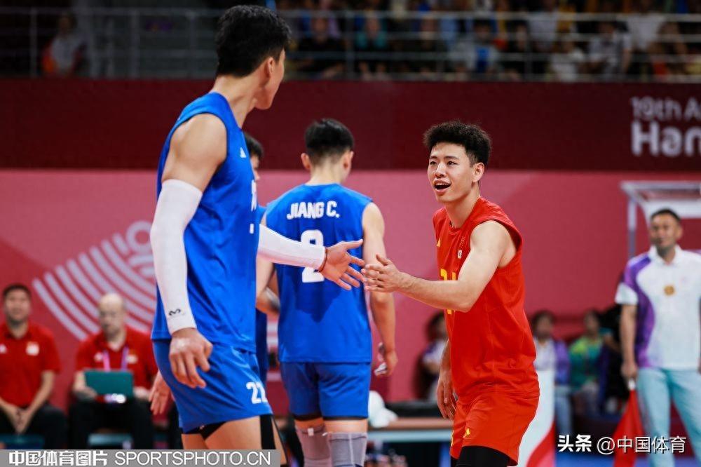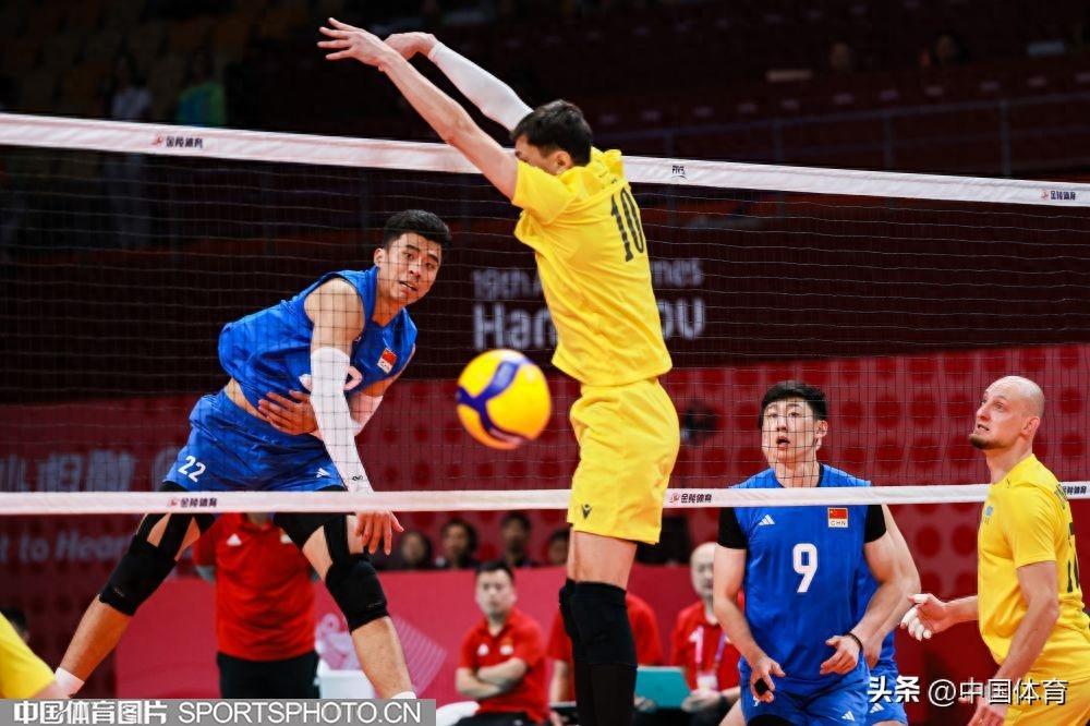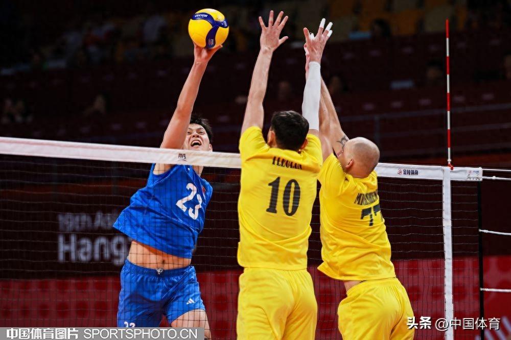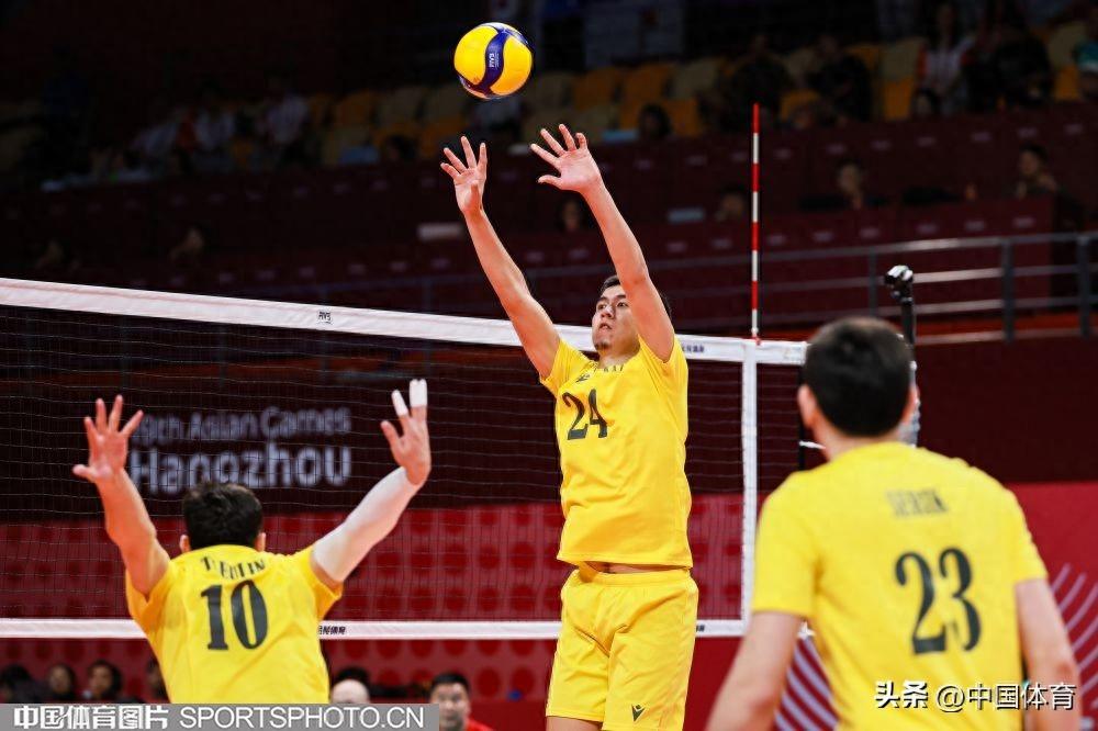 中國體育訊 9月21日晚,杭州亞運會男子排球比賽繼續展開小組賽的爭奪。東道主中國隊以3比0戰勝哈薩克斯坦隊,收穫兩連勝。三局比分爲25比20、25比23、25比20。本輪過後,中國隊以A組第一名的身份晉級12強。(中國體育圖片 鹿麟 攝)王鶴斌接球曲宗帥(右)與隊友擊掌李詠臻擊球彭世坤(左)擊球江川(左)擊球努爾利別克(左二)傳球張景胤擊球、扎西克雷攔網王濱(左)擊球於垚辰(左)、李詠臻(左二)攔網張景胤擊球餘元泰擊球現場觀衆