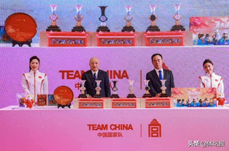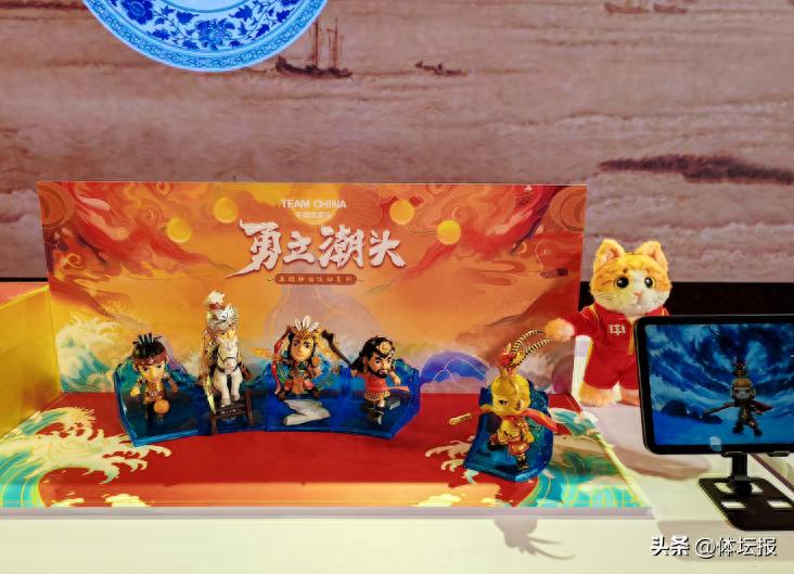 發佈會上,王旭東、於建勇與兩位奧運冠軍羅雪娟、何雯娜一同爲中國國家隊的文創新品揭開神祕面紗。以故宮博物院館藏清康熙款白釉花觚、清袁江繪《觀潮圖》軸及清乾隆御題玉兩節人面紋琮爲設計靈感的勇立潮頭·中國尊;將七項運動與七位我們耳熟能詳的神話英雄及歷史人物相結合的勇立潮頭英雄神話系列盲盒;以及中國國家隊和故宮博物院聯手打造的“故宮裏的風景”系列冰箱貼等產品,設計美觀大方,既符合當下的時代審美,又不乏中國傳統之美。